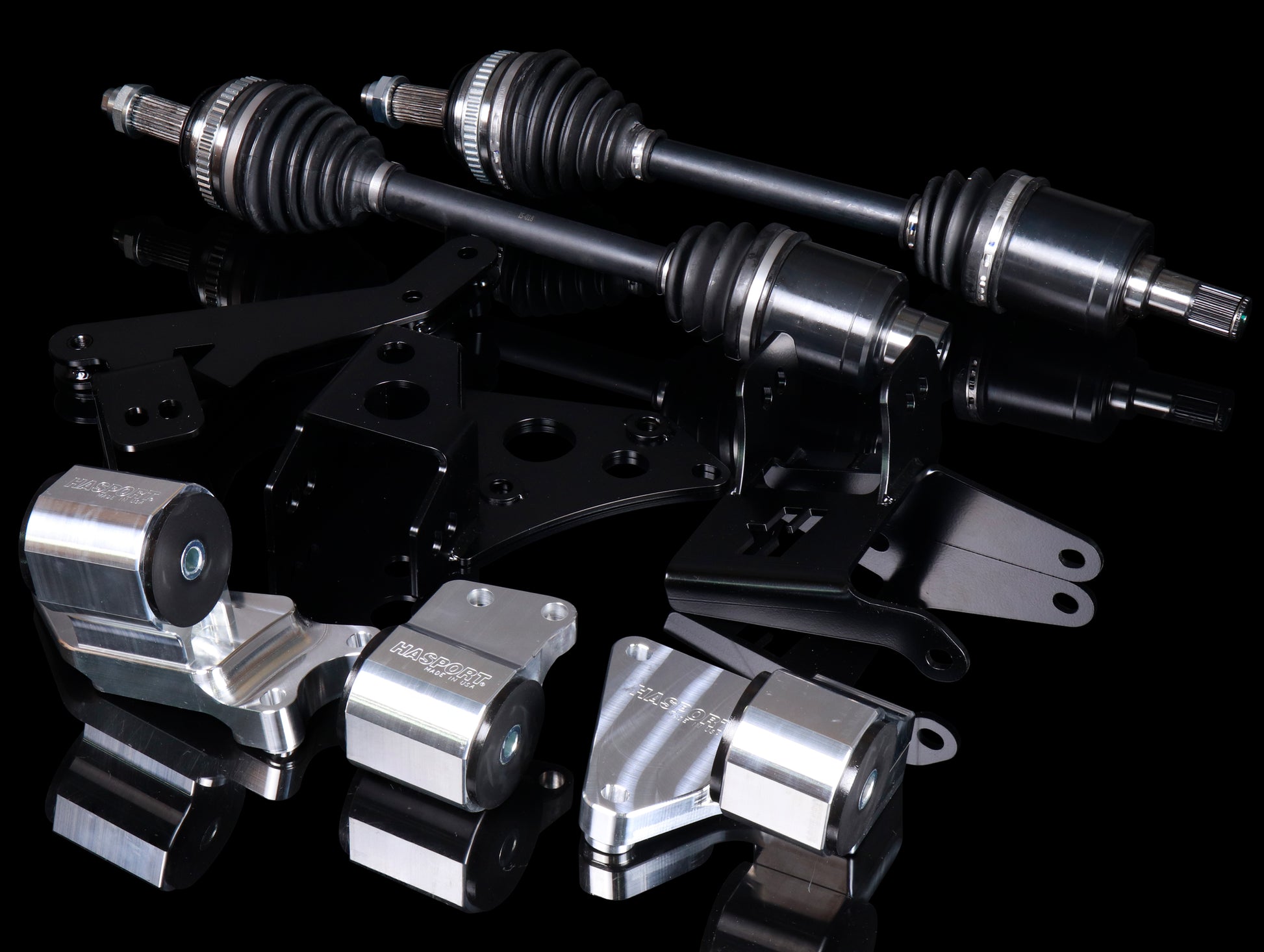 The starter package includes a Hasport Billet K-series Engine Mount Kit, along with a choice of 32mm or 36mm Insane Shafts K-series Axles. This package is an easy-to-use solution for those who want to install a K-series engine in their vehicle and save money at the same time.