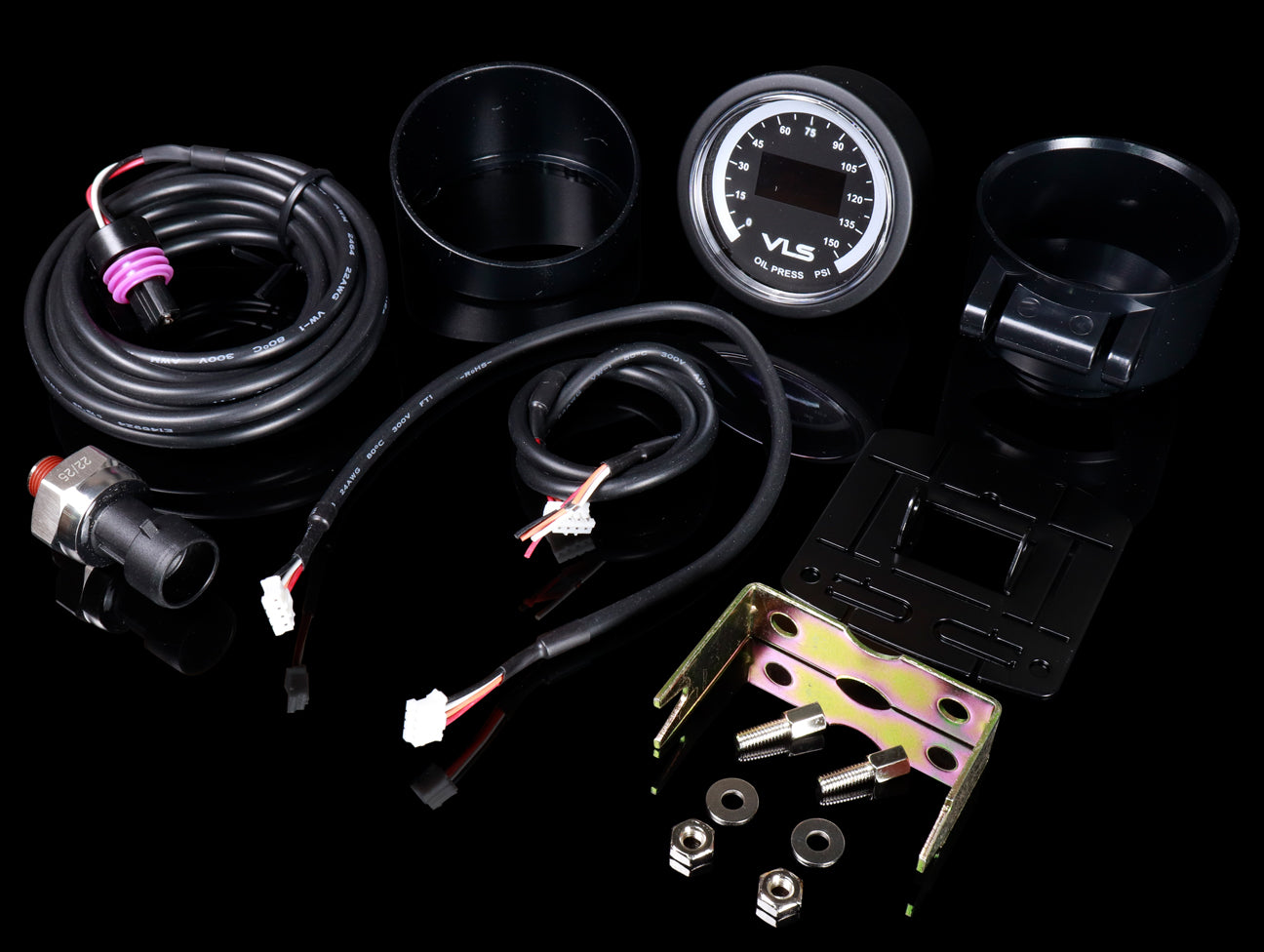 The Revel VLS Oil Pressure gauge monitors the oil pressure from 0 PSI up to 150 PSI. The OLED screen allows for easy readings from any viewing angle, and a 30 LED outer ring for viewing at a quick glance. This kit is included with the oil pressure sensor in 1/8 NPT thread pitch for easy installation.