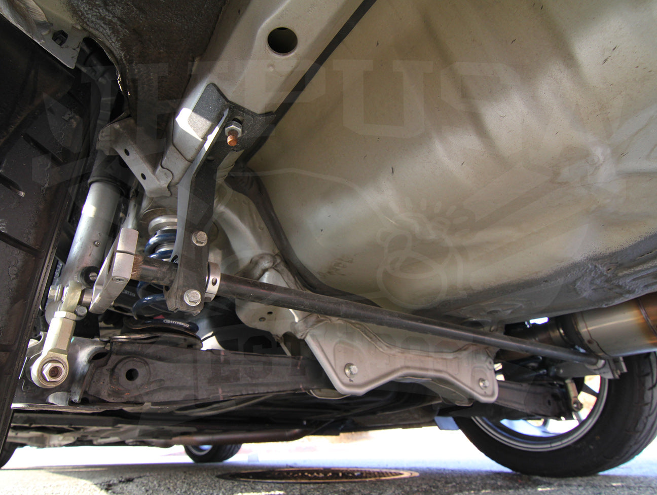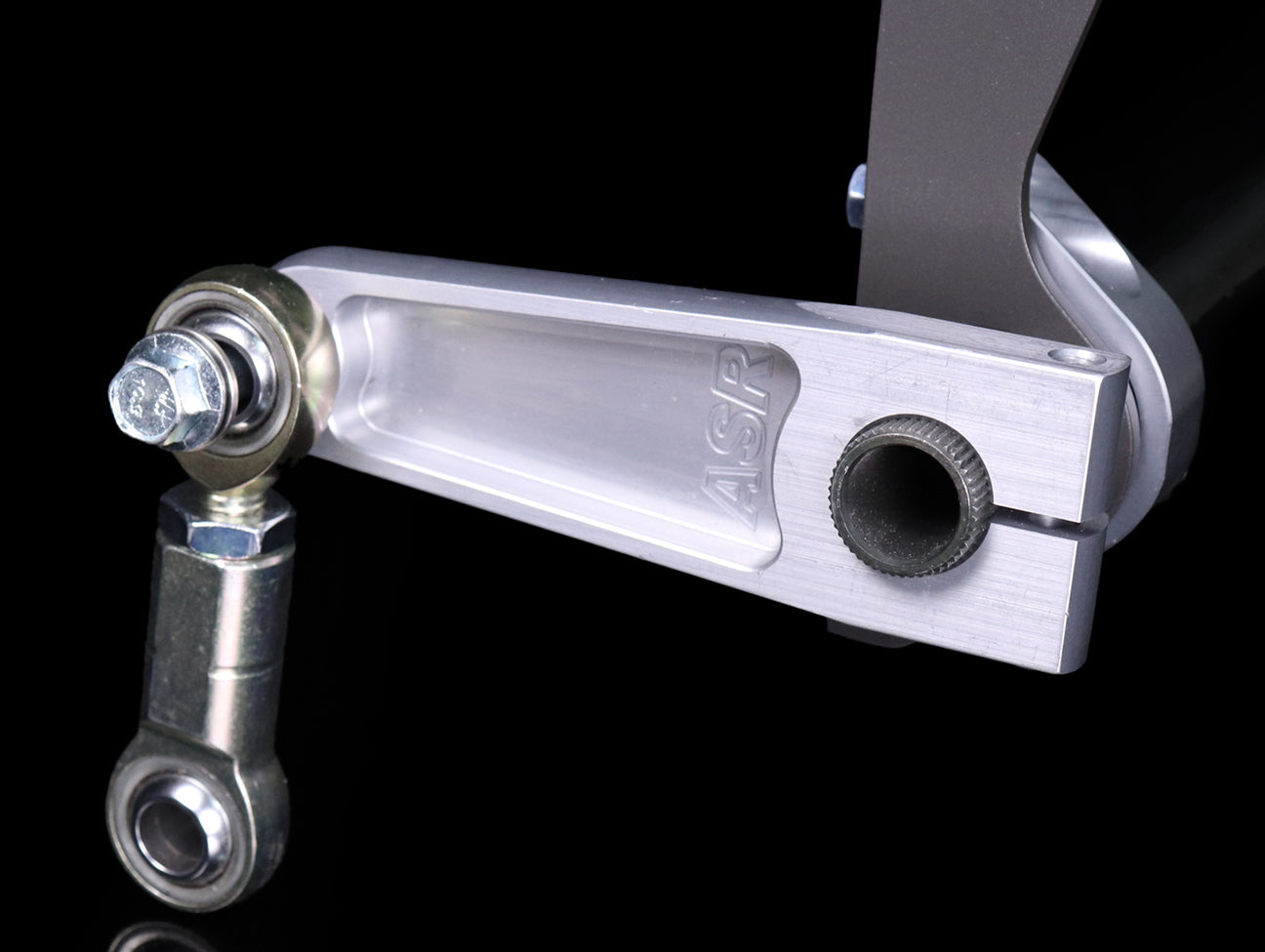The ASR 25.4mm (1 inch ) hollow sway bar is frame rail mounted and swaybar links are attached on the outboard side of the control arm. This design allows for much better leverage and thus swaybar can be smaller and the whole package can be lighter.