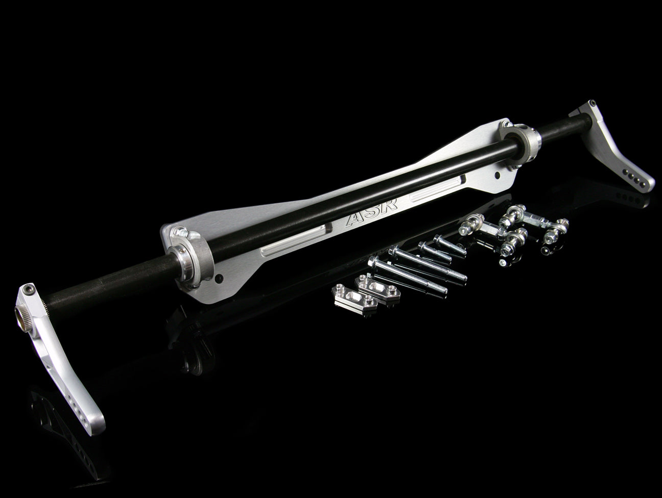 ASR billet machined aluminum arms are designed with adjustability in mind as well. The slotted or drilled holes allows the user to mount the supplied ASR endlinks in the optimum 90 degree/perpendicular angle to allow for greater load transfer from one side of the vehicle to the other. The shaft collar is also made of billet aluminum due to the materials lightweight properties and strength.