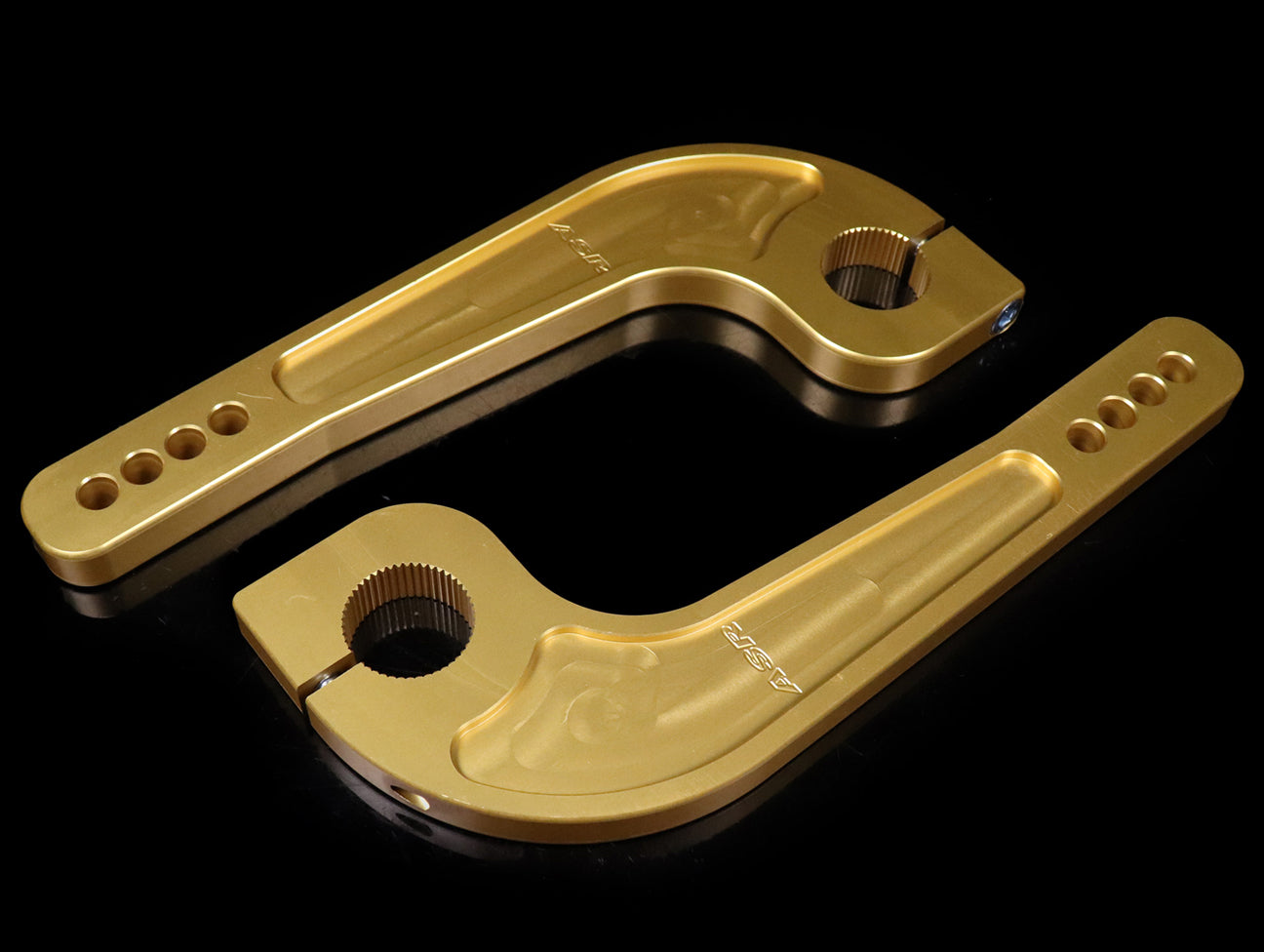 ASR billet machined aluminum arms are designed with adjustability in mind as well. The slotted or drilled holes allows the user to mount the supplied ASR endlinks in the optimum 90 degree/perpendicular angle to allow for greater load transfer from one side of the vehicle to the other. The shaft collar is also made of billet aluminum due to the materials lightweight properties and strength.