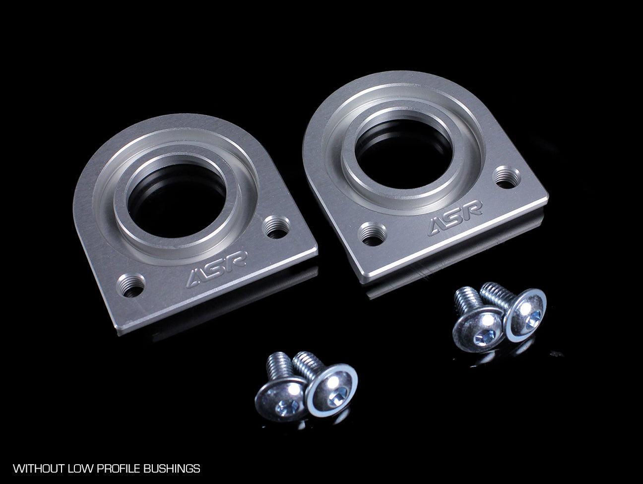 Just mock up radiator and mark where the holes need to be drilled for the 4 bolts and you're ready to install! ASR lower radiator brackets can be used with 2 different bushings. You can either re-use your existing lower radiator bushings or opt to use the OEM honda upper mount bushings for your lower ASR mounts to achieve a lower, more rigid radiator position.