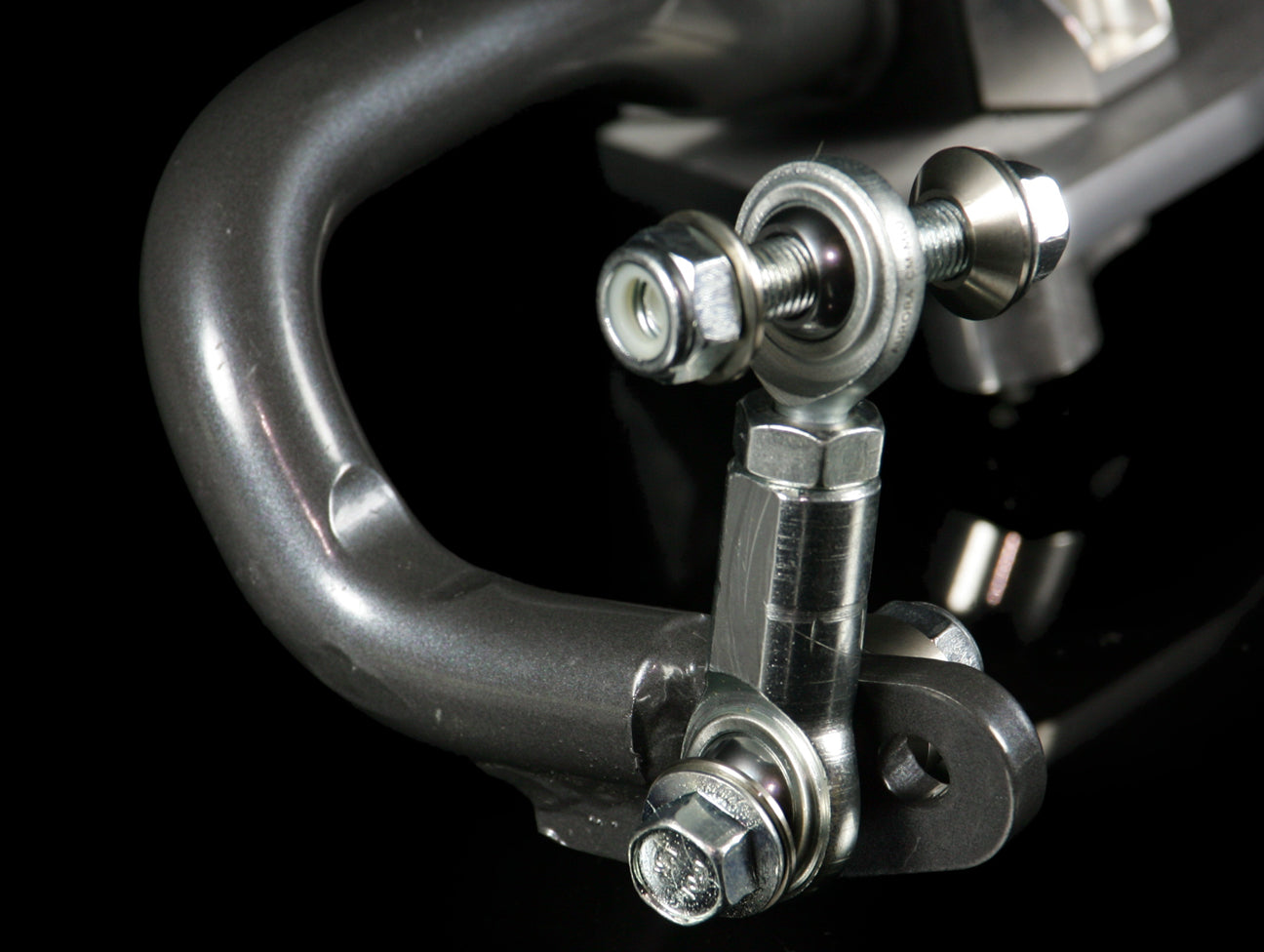These spherical endlinks are very helpful when corner weighting your vehicle. This allows the user to remove any preload from the standard or aftermarket rear anti-roll bar setup.