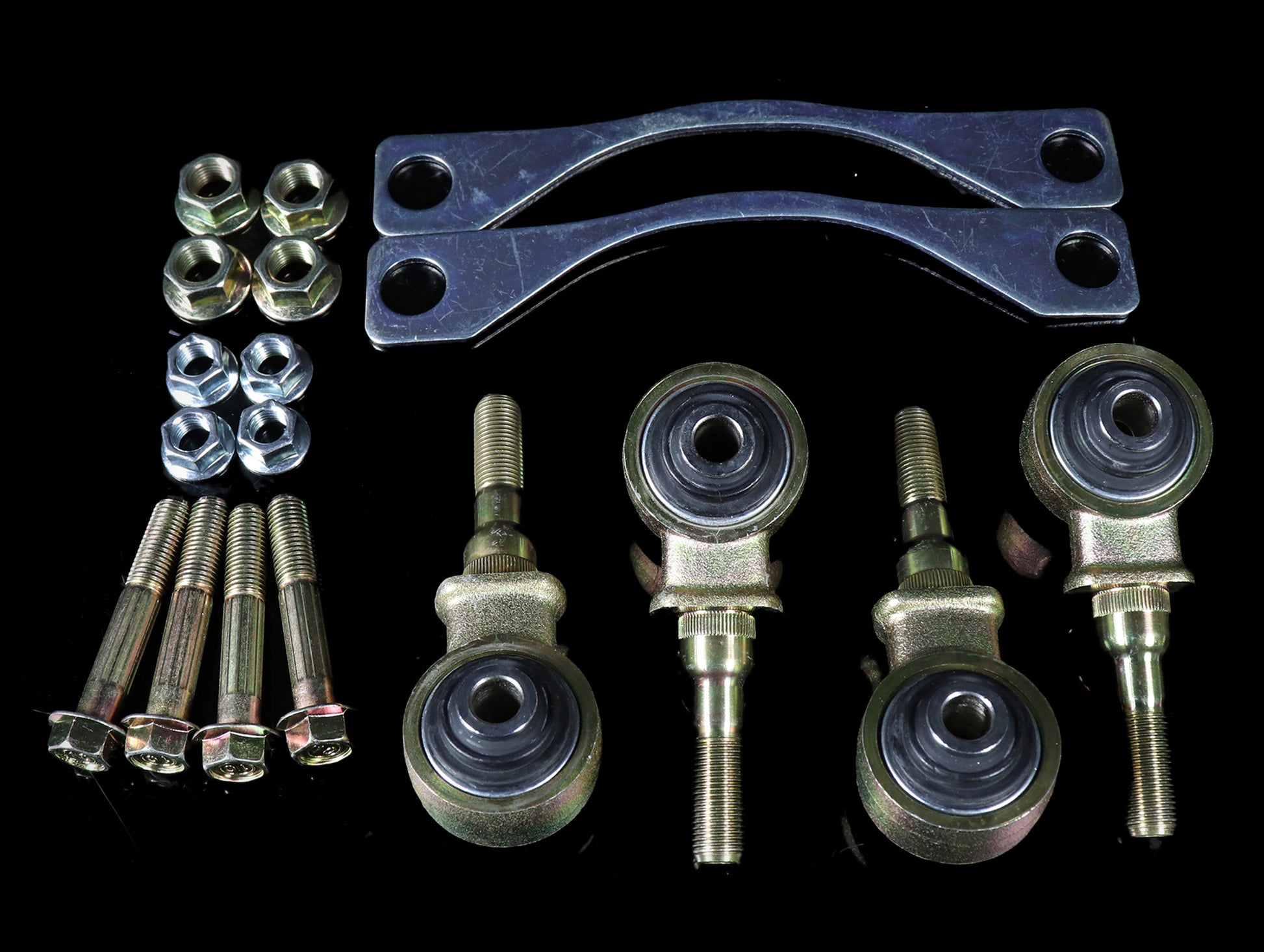 - Large sized camber ball joint hardware for maximum hold/zero slip.