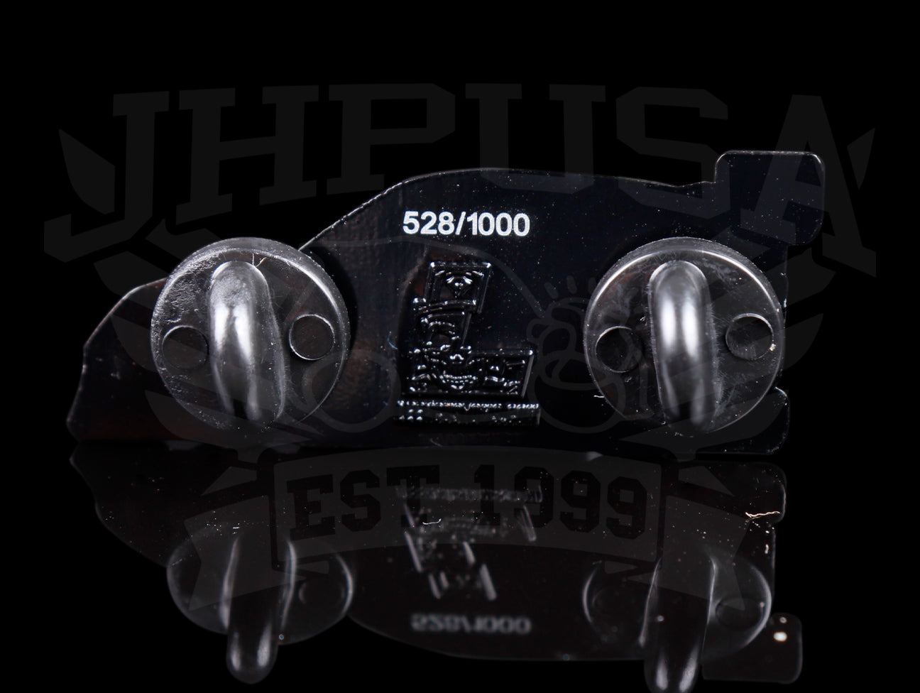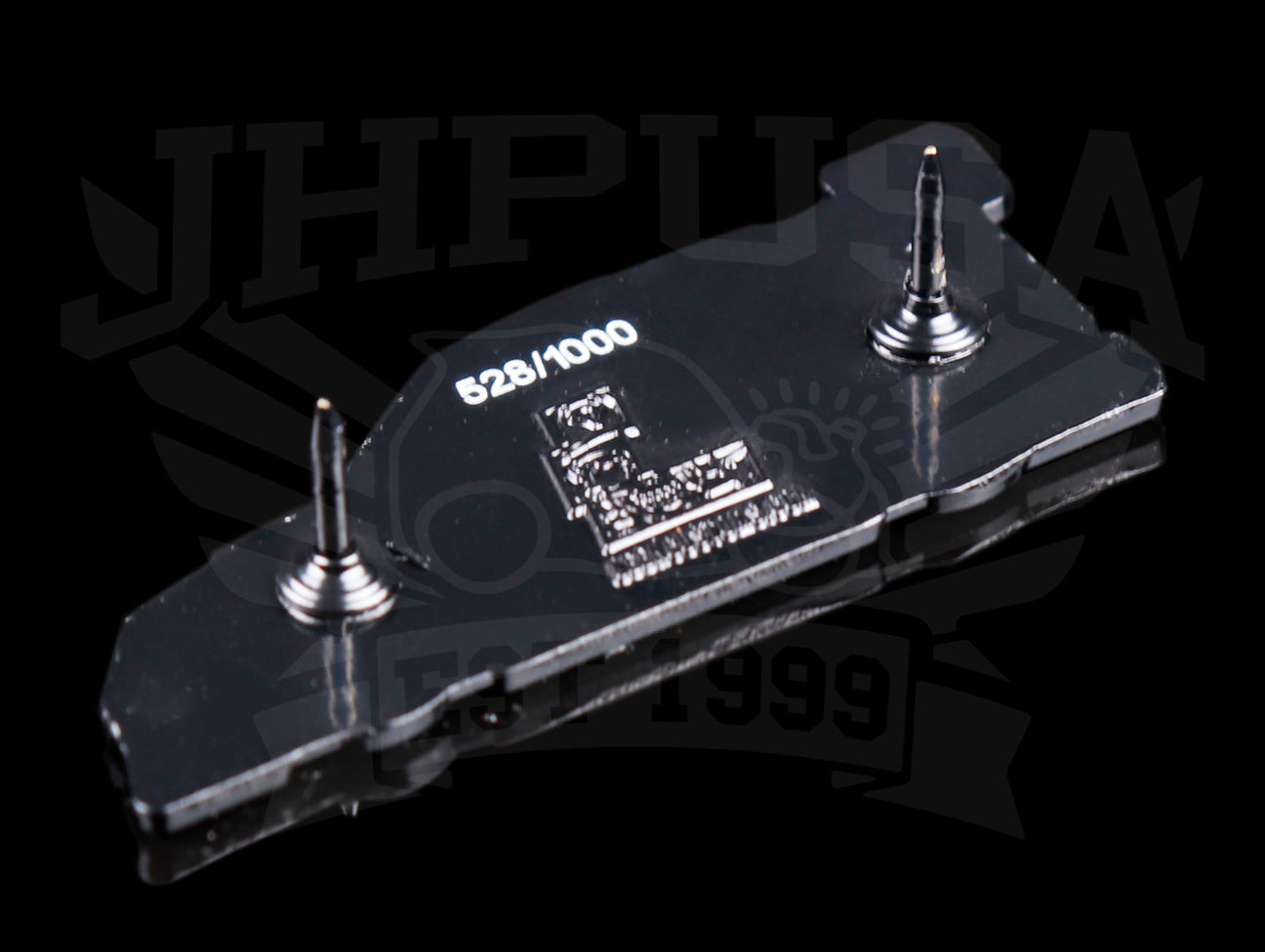 These lapel pins are quite durable as they are made from an electroplated, die-struck iron that is filled with colored enamel. They feature 2 pins on the back so you can easily attach it to your favorite backpack, jacket, pin display frame, etc. The pins measure approximately 1.5" wide and come on a customized backer, wrapped in clear film to protect it from the elements if you wish to keep it in like-new condition. Supplies of this pin are limited.