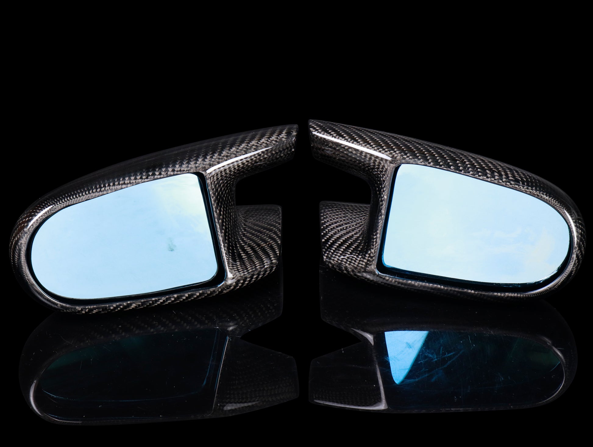 The Osaka JDM Mirrors, available in fiberglass or carbon, feature blue anti-glare glass to reduce headlight glare from vehicles behind you. The fiberglass mounting plates come unpainted and do not have pre-drilled holes for installation.
