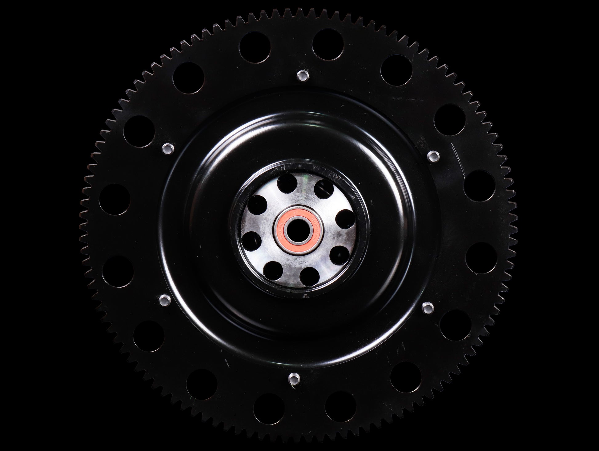 Twin Disc Kit Contents: Pre-mounted pressure plate & twin clutch discs on a chromoly steel flywheel, release bearing, alignment tool, and pilot bearing.