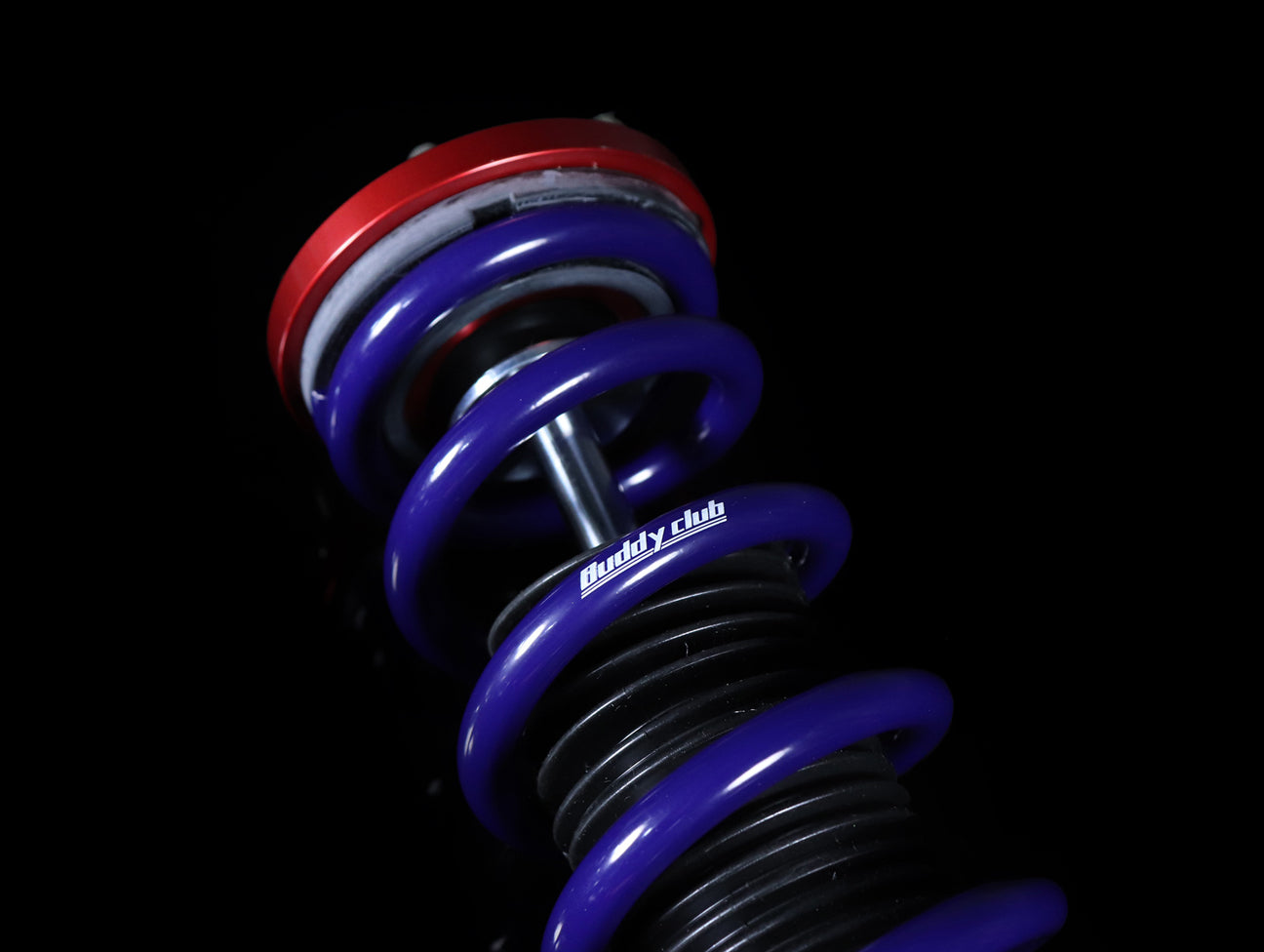 BuddyClub's new hybrid Sport Spec coilovers uses a larger size damper for better ride quality. The single tube design of the Buddy Club Sport Spec Damper allows for use of a larger piston than other designs, this allows for better handling and a smoother ride. The inner pistons of Buddy Club Sport Spec Dampers are precision machined to the tightest tolerances possible to prevent unnecessary noise and vibration. Within normal operating range, simply use the spanner wrenches (provided in the damper kit) to adjust the lower bracket of the damper to your desired vehicle ride height, without sacrificing comfort or performance. Inverted Designed Dampers for MacPherson Strut equipped cars allow for a larger piston and more fluid movement than conventional designed dampers adapted for Macpherson use.