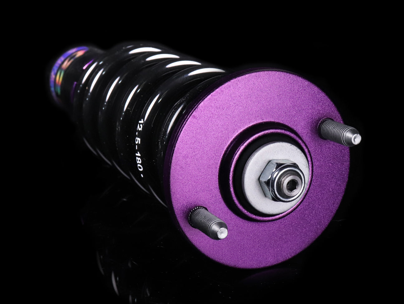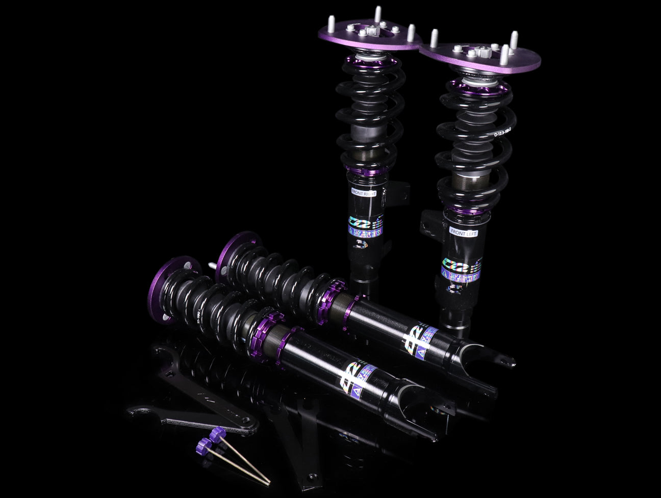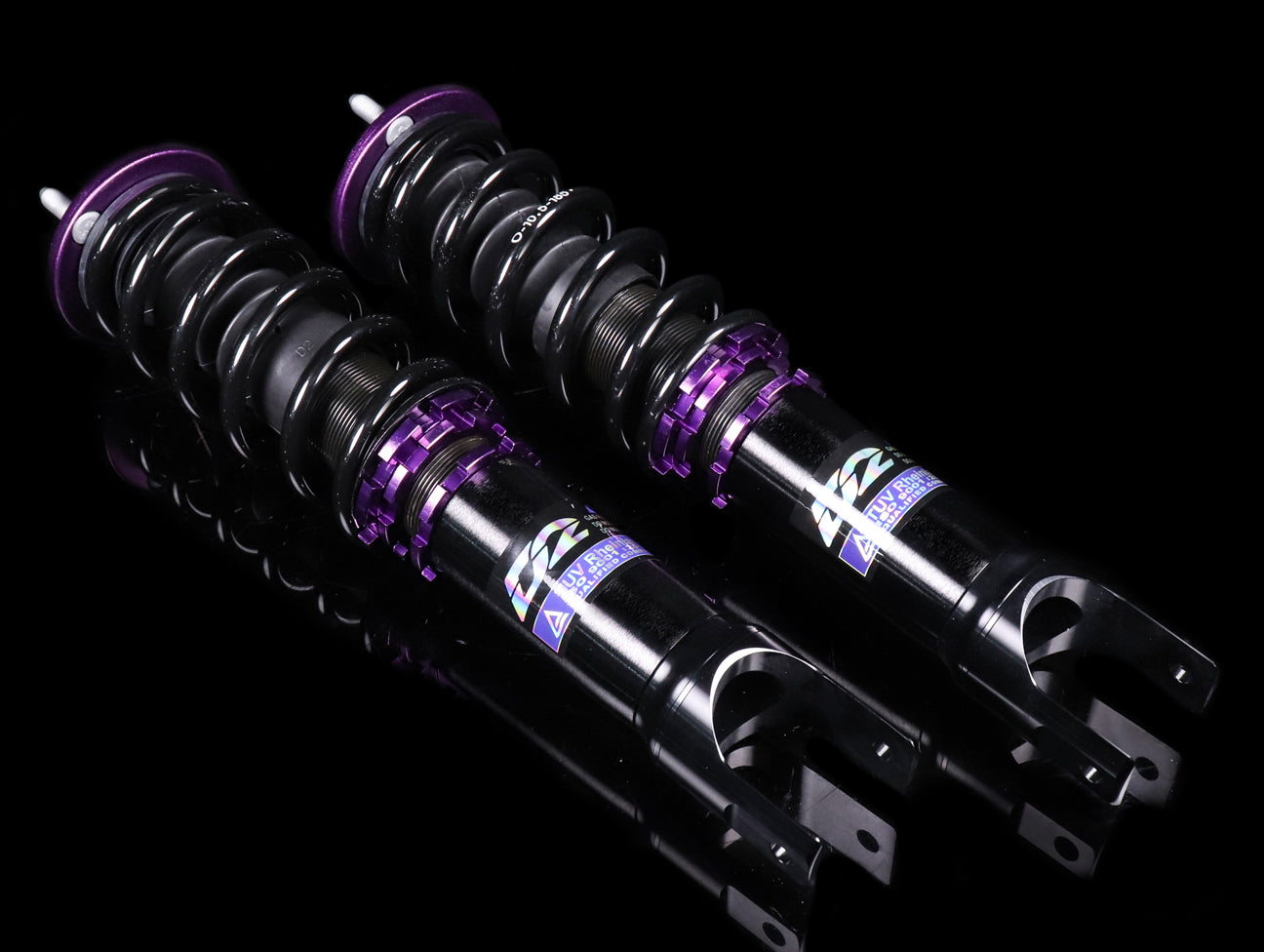 D2 Racing Sports (RS) Coilover System is perfect if you are looking to fully customize the vehicle's suspension system. The impressive features include fully adjustable 36-way mono tube dampening system, custom spring rates ranging from 3 to 22 kg/mm, easy ride height adjustments with Teflon coated spring perch (which allows a drop of up to 120mm on most applications, and the option to adjust camber with 6061 powder-coated aluminum camber plates and upper pillow ball mounts.