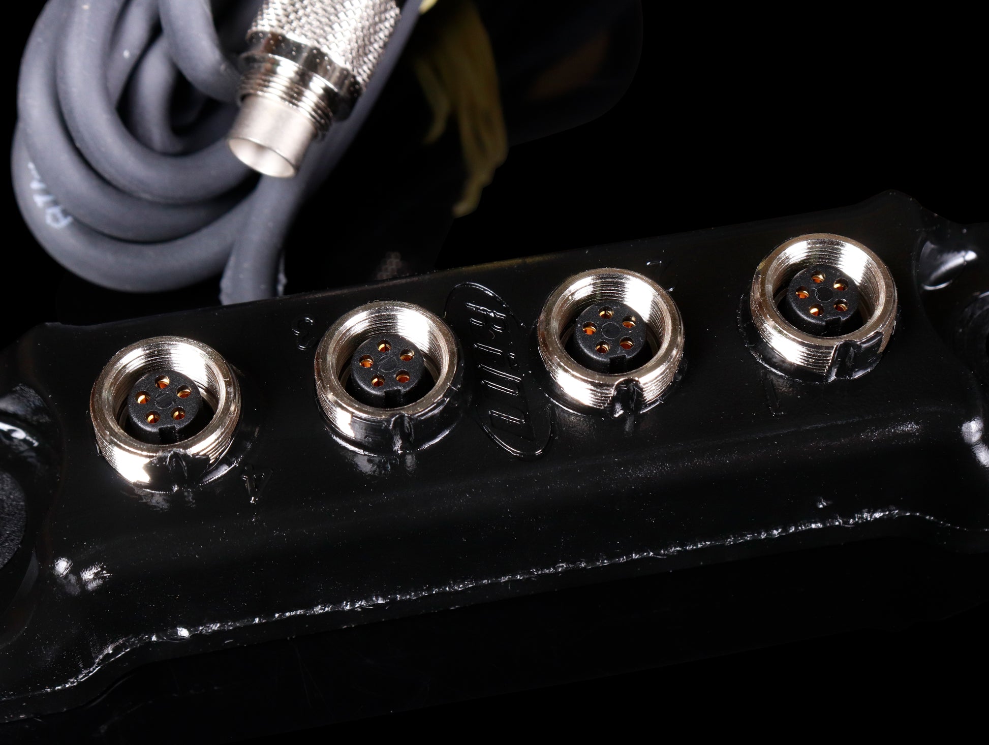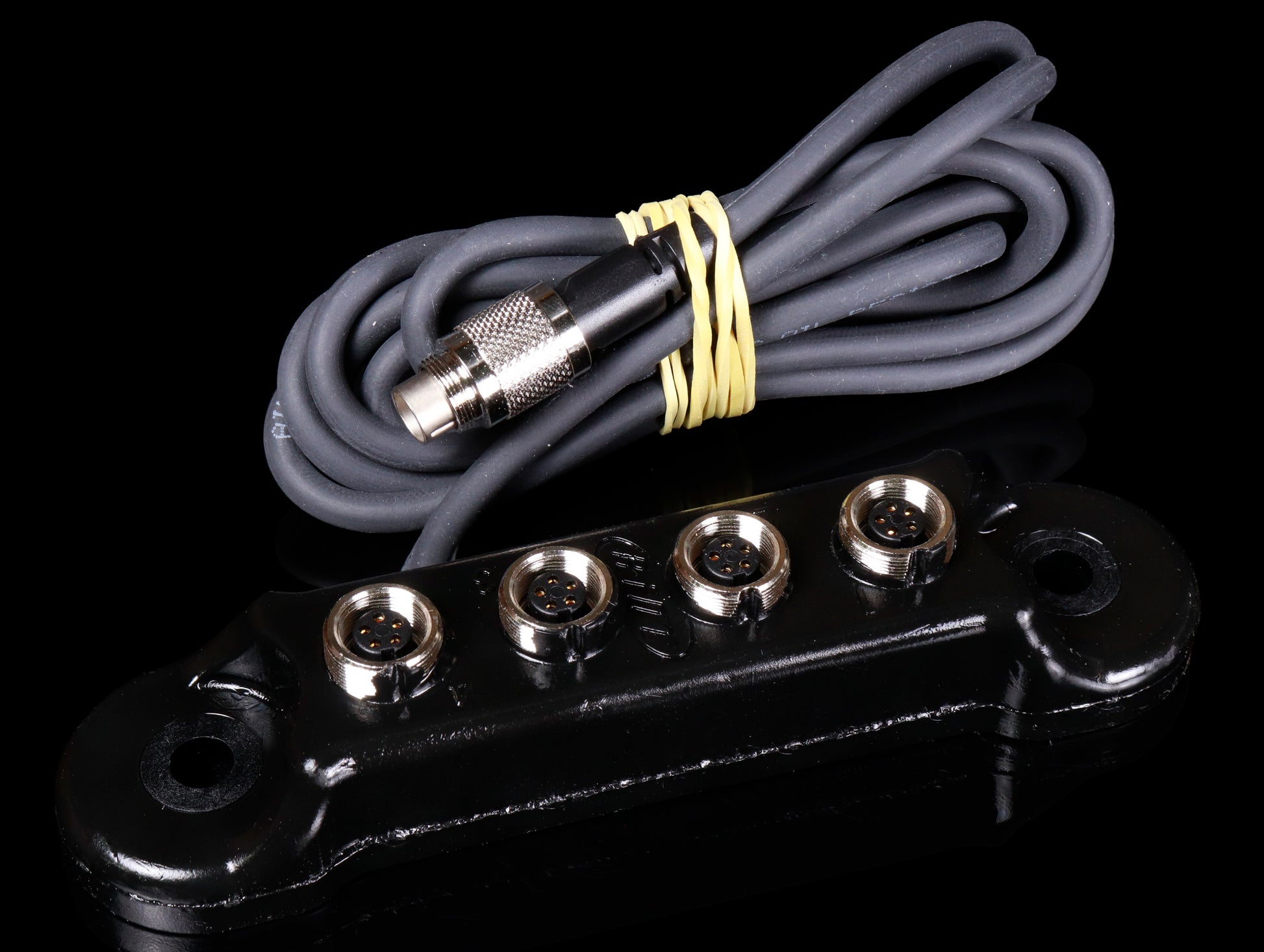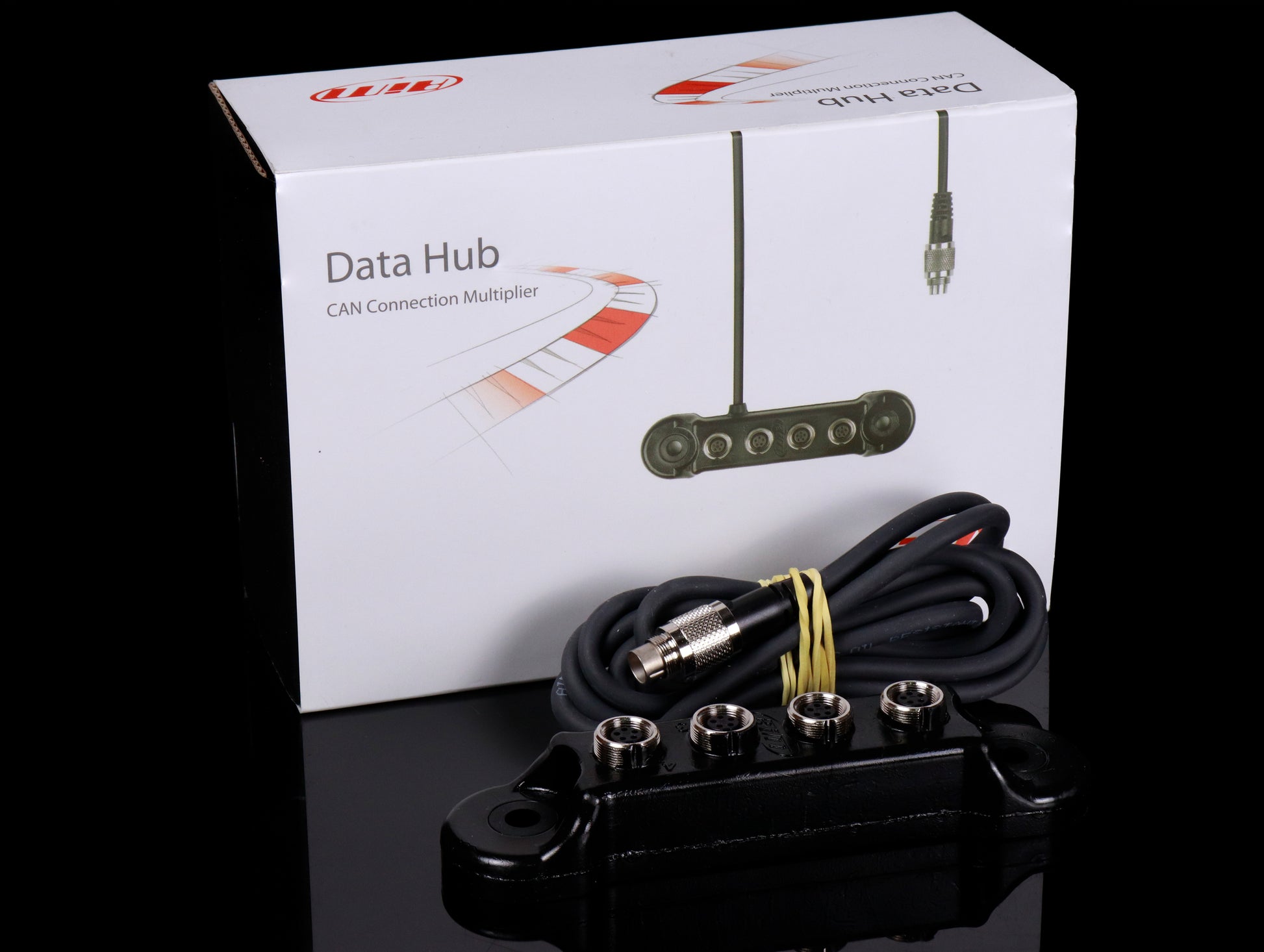 The compact Data Hub provides four additional CAN channels and works as an interface between the AiM logger and its peripheral devices and accessories. Such as the LCU1S Lambda Controller, GPS Module, ACC2 CAN converter, TC Hub (thermocouple multiplier), Memory key.