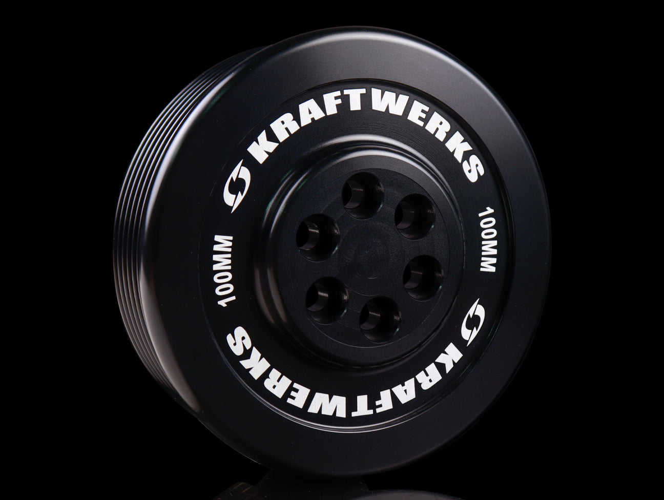 Maximize the performance of your supercharger with Kraftwerks pulley. The pulley is black anodized billet aluminum for serpentine belt - Six Bolt.