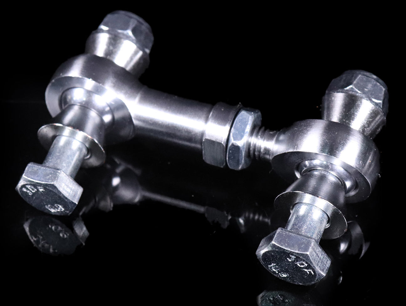 Eibach's adjustable spherical front sway bar endlinks provide superior performance by having absolute minimum movement within the spherical eyelet.