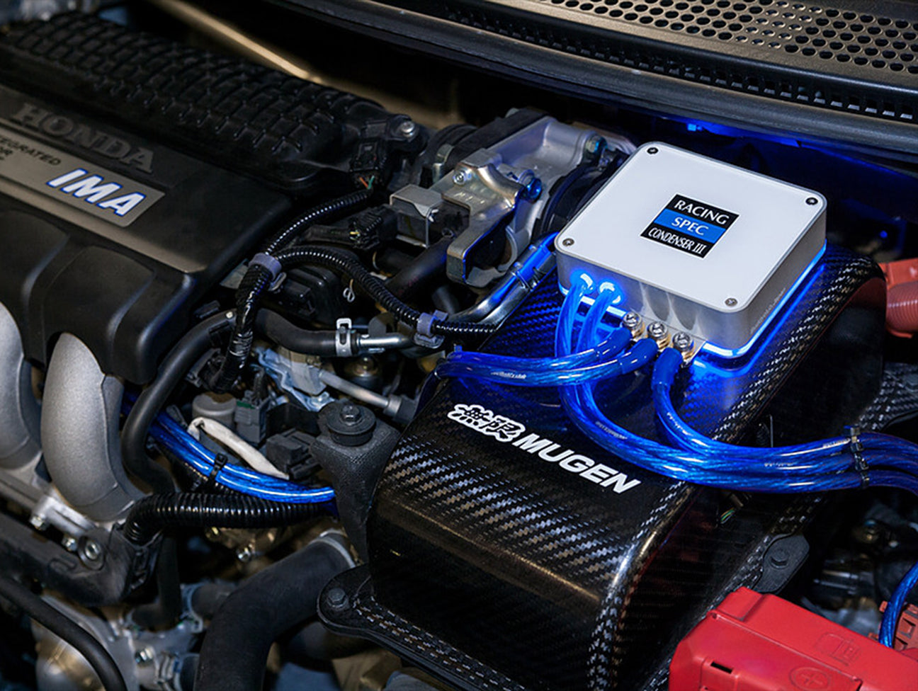 New Buddy Club Racing Spec Condenser III is more concise in appearance, the original Founder rounded appearance has also changed the type, more prominent around the wires in a transparent interface to do the processing, once connected electricity use, the appearance of Blue light will be revealed, so that the texture of interior car increased dramatically.