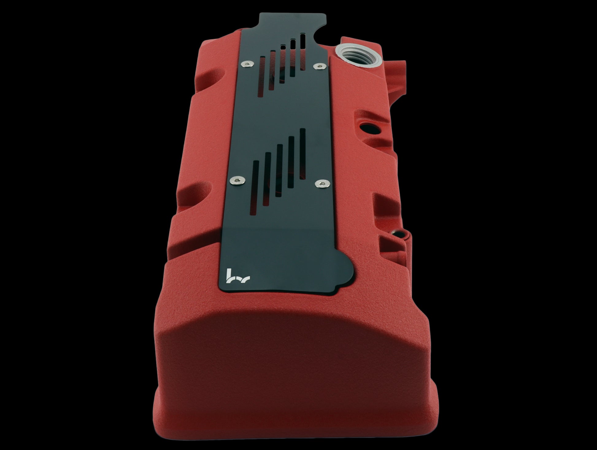 The Hybrid Racing K-Series coil pack cover was inspired by some of Honda's historic Formula One engines. The cover is constructed from aluminum and powder coated for a smooth semi-gloss finish. Each coil pack cover includes spacers and stainless hardware to fit OE or custom valve covers using OE or aftermarket engine wiring harnesses. Spruce up your engine bay by adding this unique item to your build list! Available in Dust Black anodized finish only.