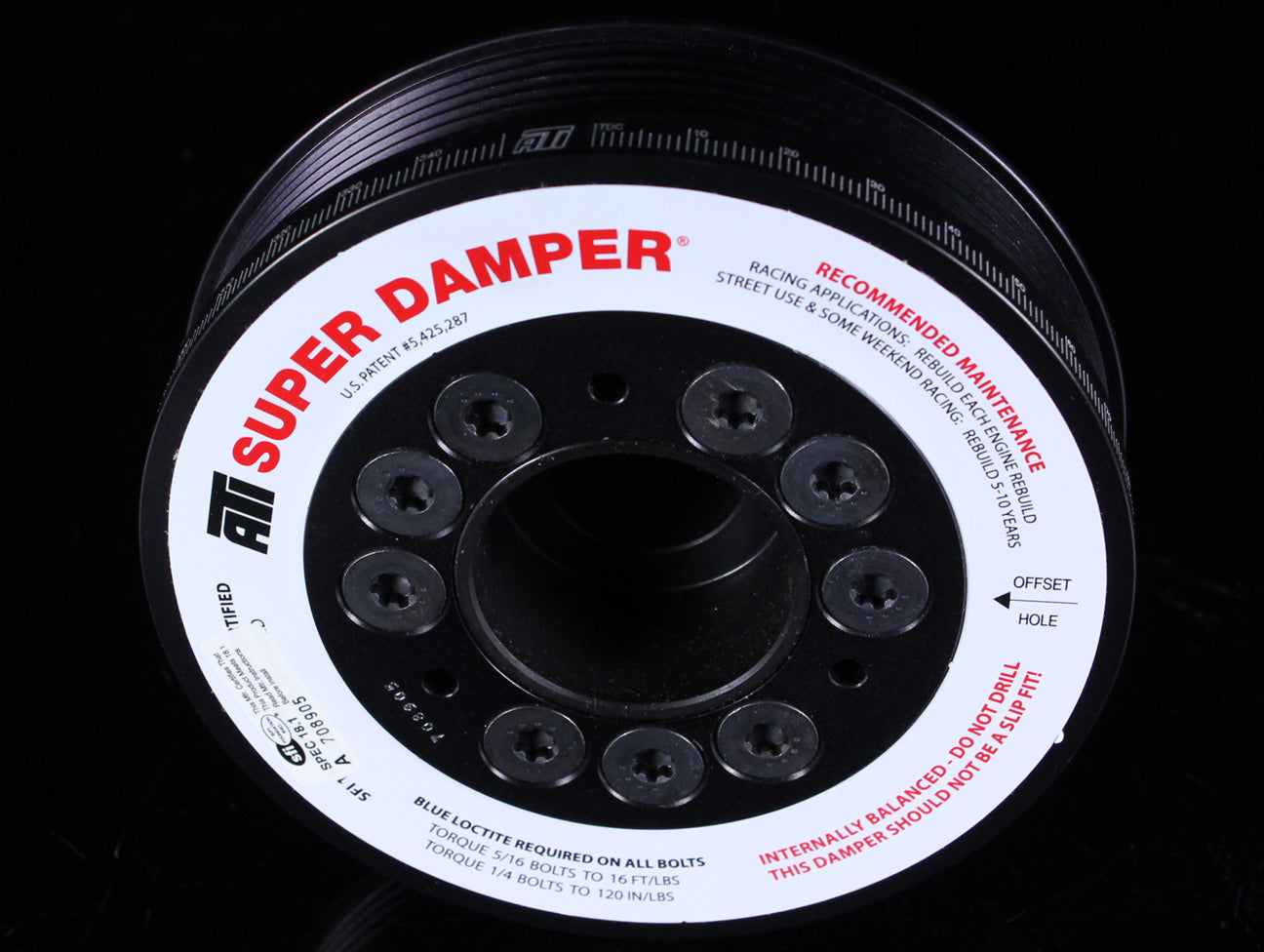 Installation Note: ATI dampers are a 1-thousandths press fit, they do not just slide on like OEM crank pulley. They will need to be pressed onto the crank snout with a damper install kit.