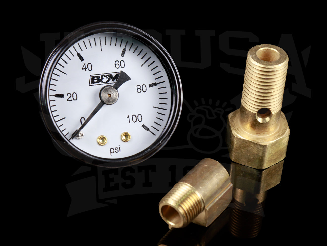 The B&M Fuel Pressure Gauge Set allows for accurately measuring fuel pressure. Proper fuel pressure is critical at full throttle to prevent lean conditions. Recommended for use with CommandFlo for a complete, accurate fuel delivery tuning system.
