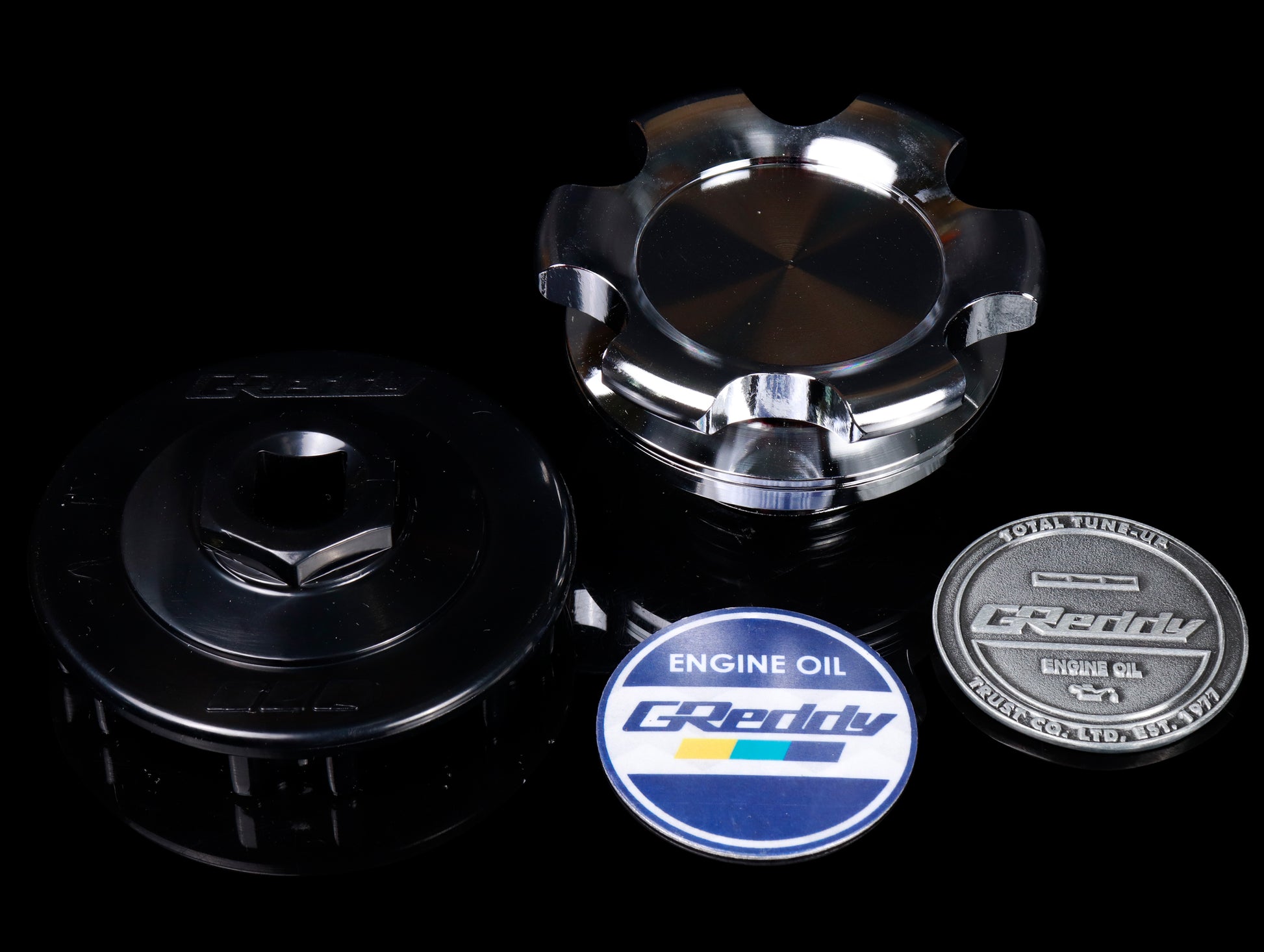 With an original GReddy design these CNC billet aluminum oil filler caps will bring class and style to your high performance engine. Also included is a metal GReddy badge. Applications for many popular Japanese vehicles Unleash the full potential of your high-performance engine with GReddy CNC billet aluminum oil filler caps. These sleek and stylish caps, will elevate the look of your engine. And with a handy metal GReddy badge included, you can show off your expertise in choosing the best for your Japanese vehicle.