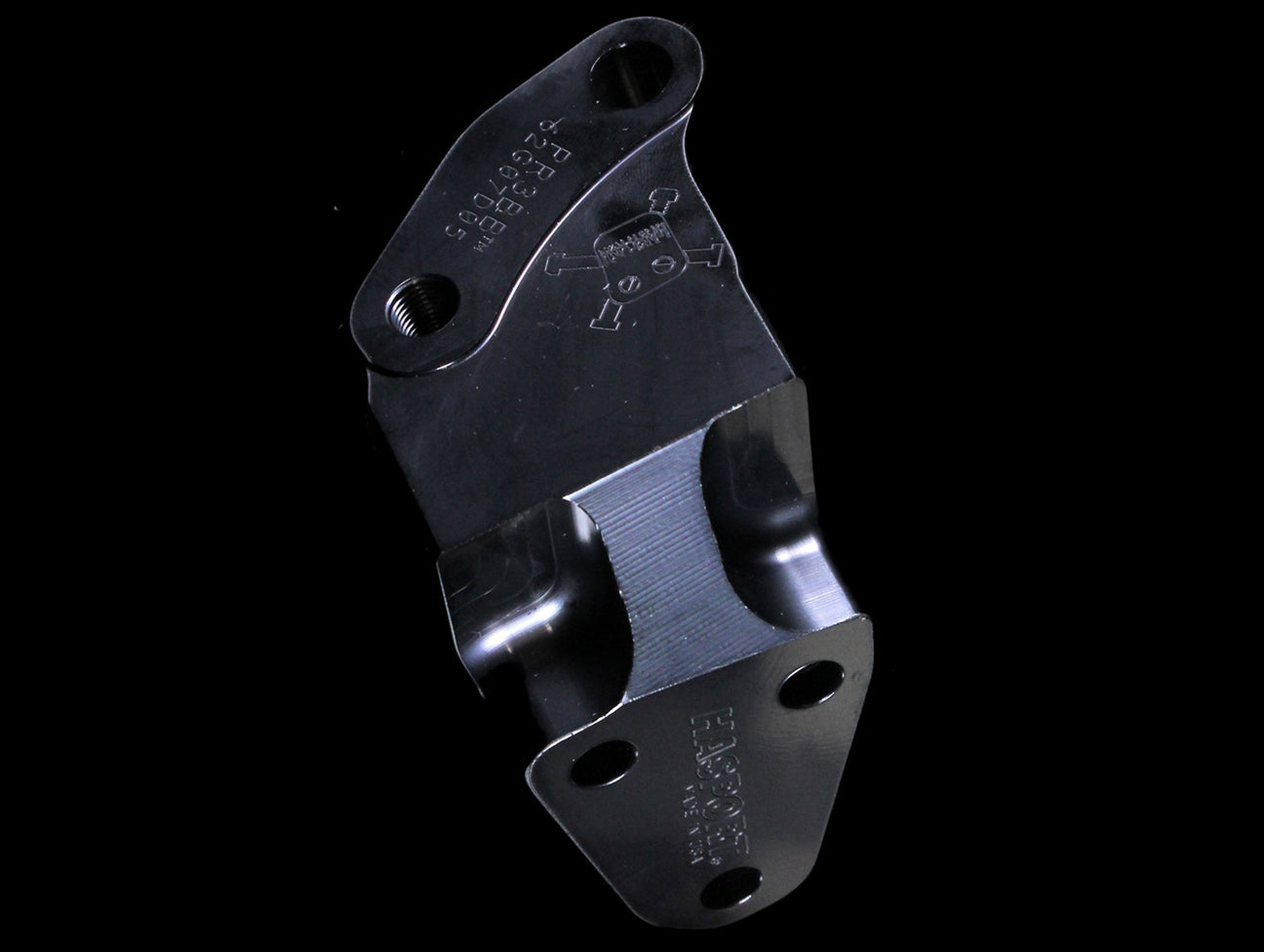 Hasport's B-series billet block bracket aka "post mount" in exclusive JHP anodized black color. Designed and manufactured in Hasport's Phoenix AZ facility.