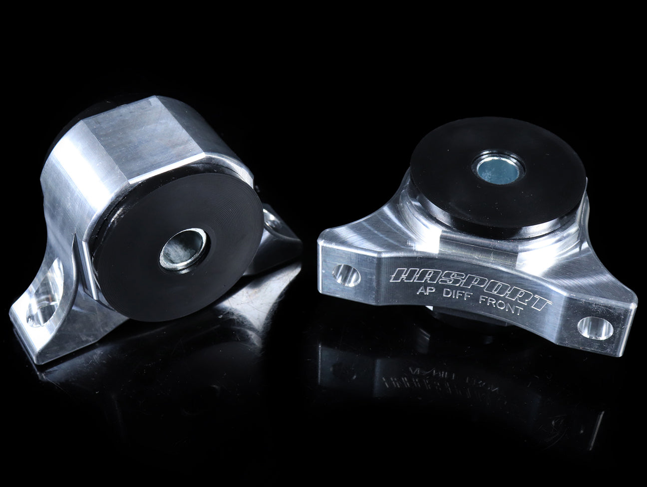 S2000 owner's, at one point or another, may experience leaks from the OEM liquid filled rear differential mounts. Hasport has released these new S2000 differential mounts with urethane inserts as a cure for this problem. These mounts are made of 6061-T6 billet aluminum and have optional urethane stiffness.