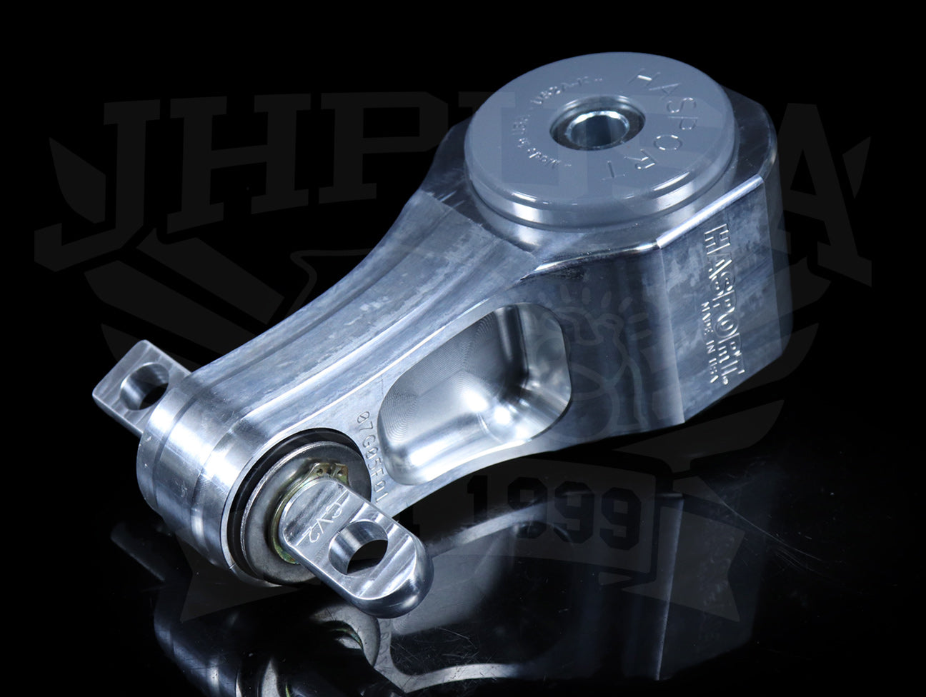 This mount also has Hasport's new BULLETPROOF™ Kevlar® infused polyurethane bushing for added shear strength specifically for 62A and 82A durometers. These bushings feature Hasport’s flangeless design which have decreased vibration compared to the flanged urethane bushings but are much more durable than the tapered bushings found in our competitors mounts.