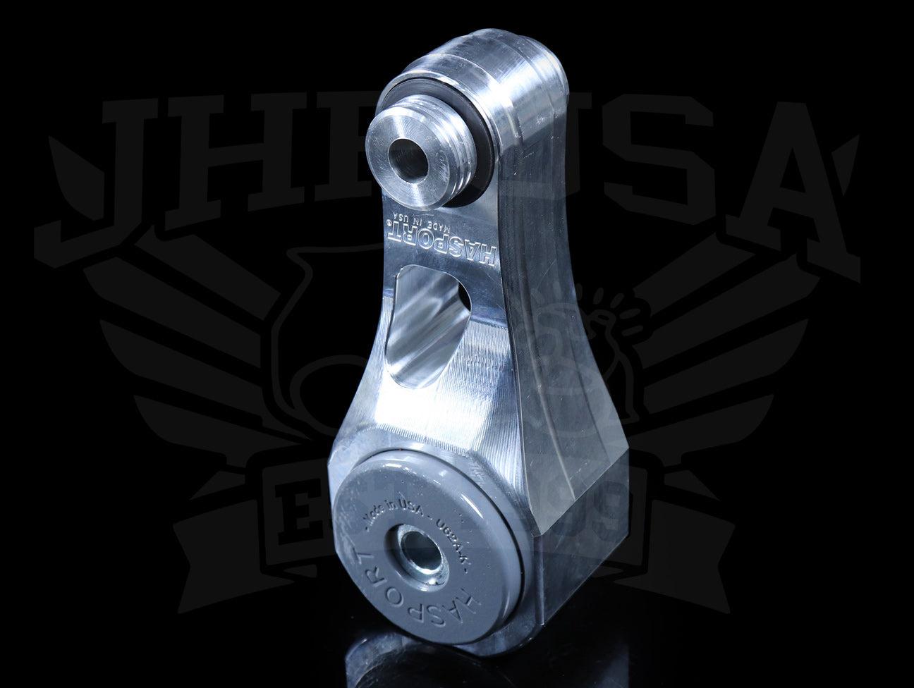 This mount also has Hasport's new BULLETPROOF™ Kevlar® infused polyurethane bushing for added shear strength specifically for 62A and 82A durometers. These bushings feature Hasport’s flangeless design which have decreased vibration compared to the flanged urethane bushings but are much more durable than the tapered bushings found in our competitors mounts.