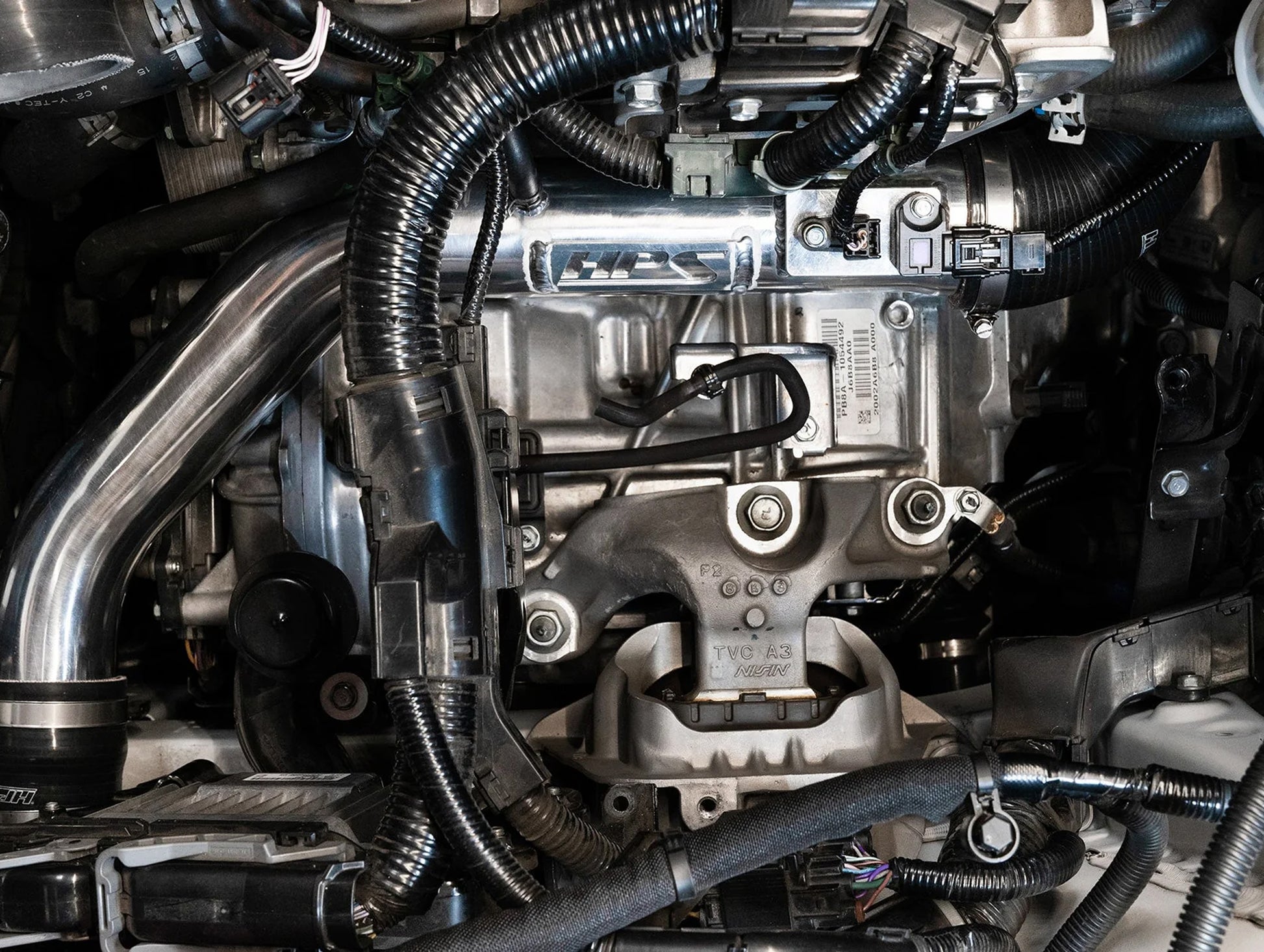- 2.5" Mandrel-bent aluminum piping replace stock restrictive tubing, OEM part # 17294-6B2-A01