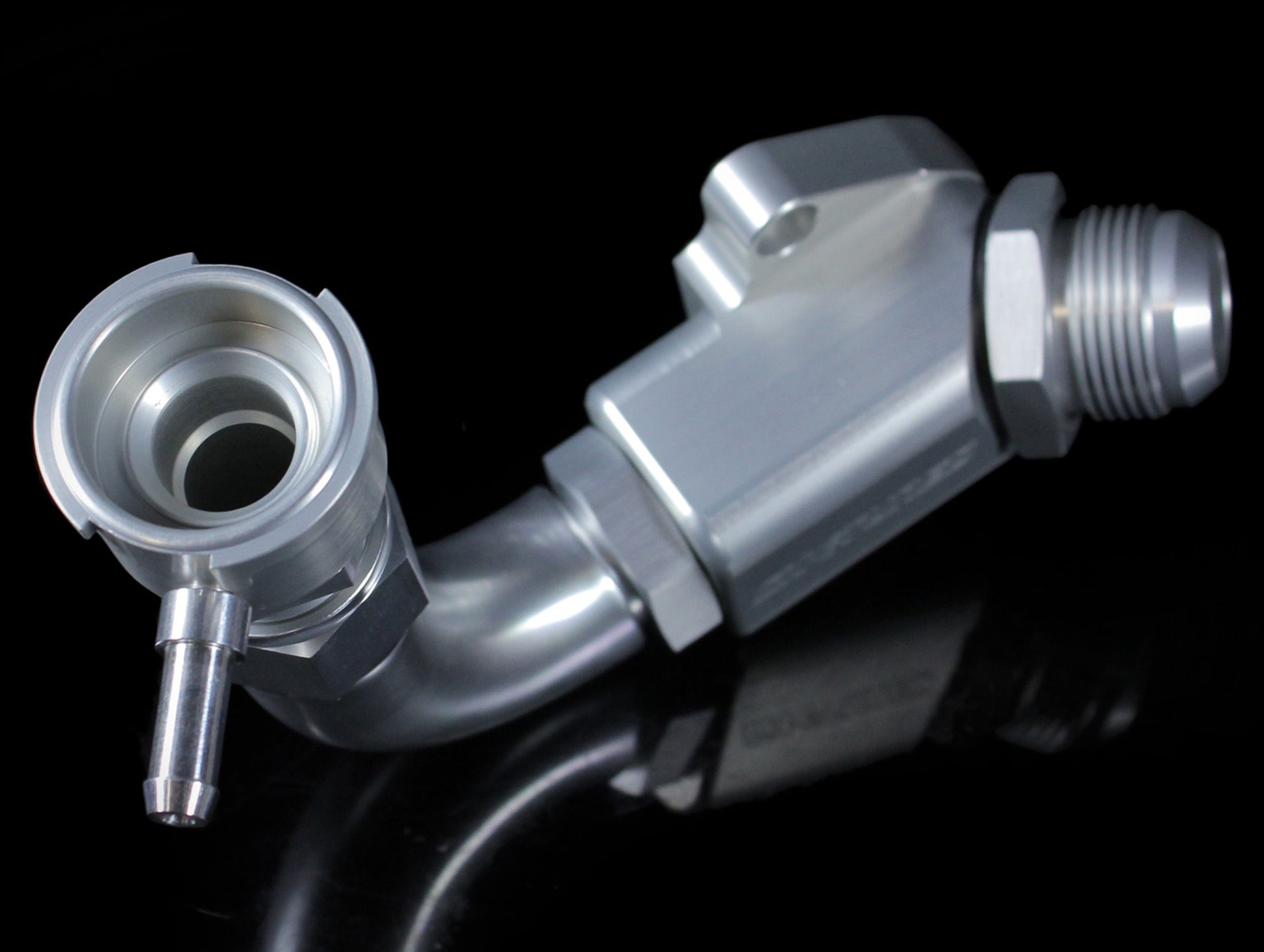 K-Tuned is known for its innovative and popular cooling components for k-series applications. Countless requests have brought forth the new b-series line. The B16/B18C5 (Type R) Upper Coolant Housing offers a versatility you won't get anywhere else. Begin with selecting a basic setup or setup with optional filler. Next you can select the inlet style/size being used whether its standard silicone hoses or -AN fittings. On the filler neck option the filler neck and overflow swivel and allow you to point the overflow fitting in any direction to allow clean and simple setup.