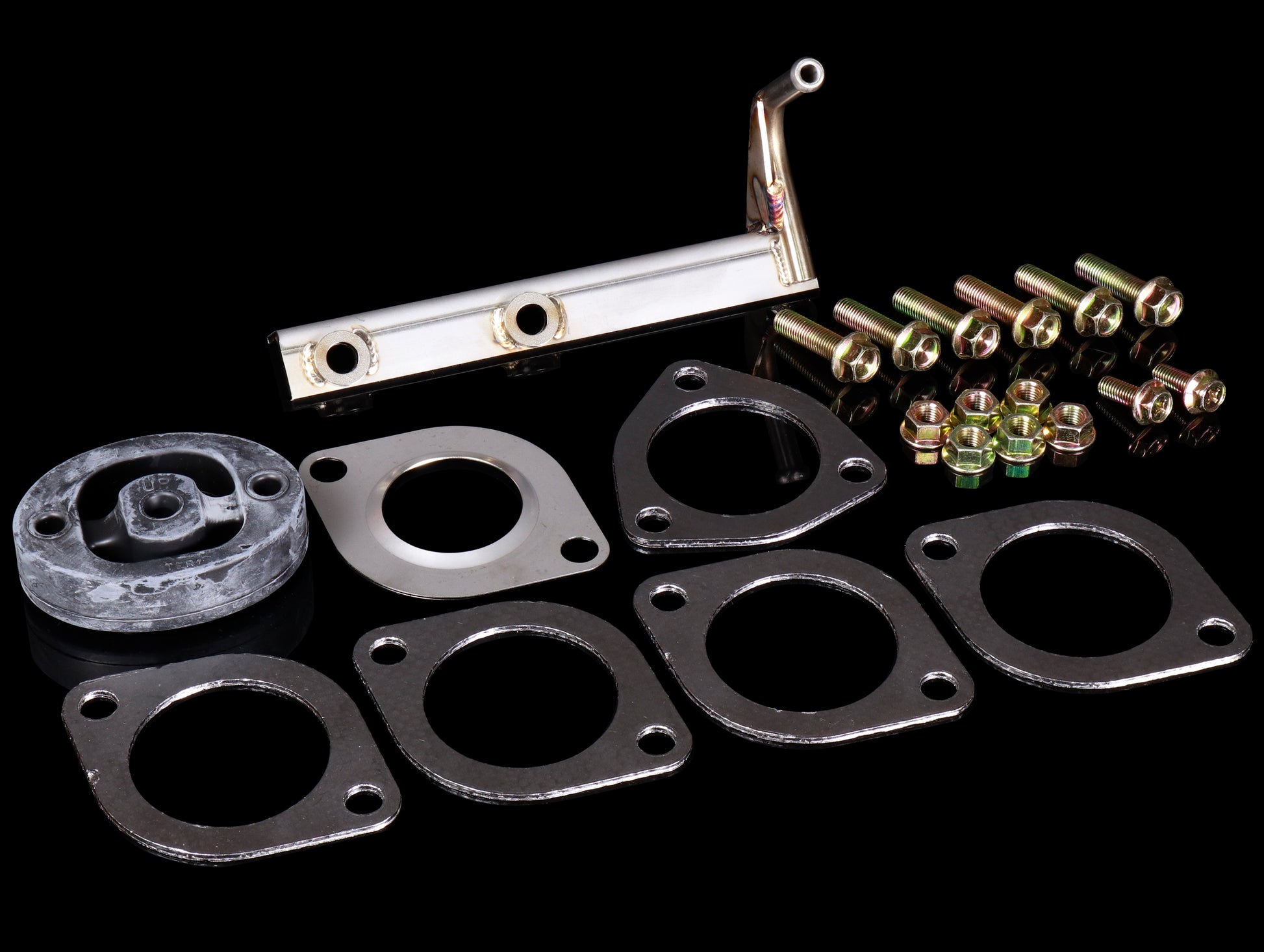 - Special bolt-on bracket with muffler hanger for the driver's side exhaust section