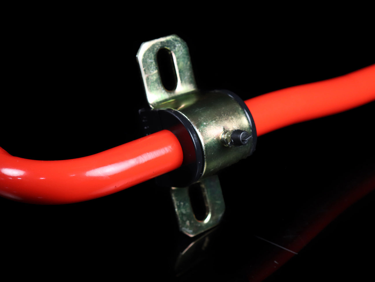 Manufactured from cold-formed, high-strength aircraft-grade steel for precision performance, and finished with a long-lasting red powder coat finish, the ANTI-ROLL Single Sway Bar Kit comes complete with greased urethane bushings for improved responsiveness and all mounting hardware and instructions for easy installation.