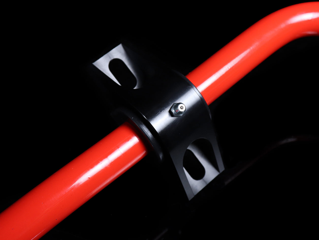 Manufactured from cold-formed, high-strength aircraft-grade steel for precision performance, and finished with a long-lasting red powder coat finish, the ANTI-ROLL Single Sway Bar Kit comes complete with greased urethane bushings for improved responsiveness and all mounting hardware and instructions for easy installation.