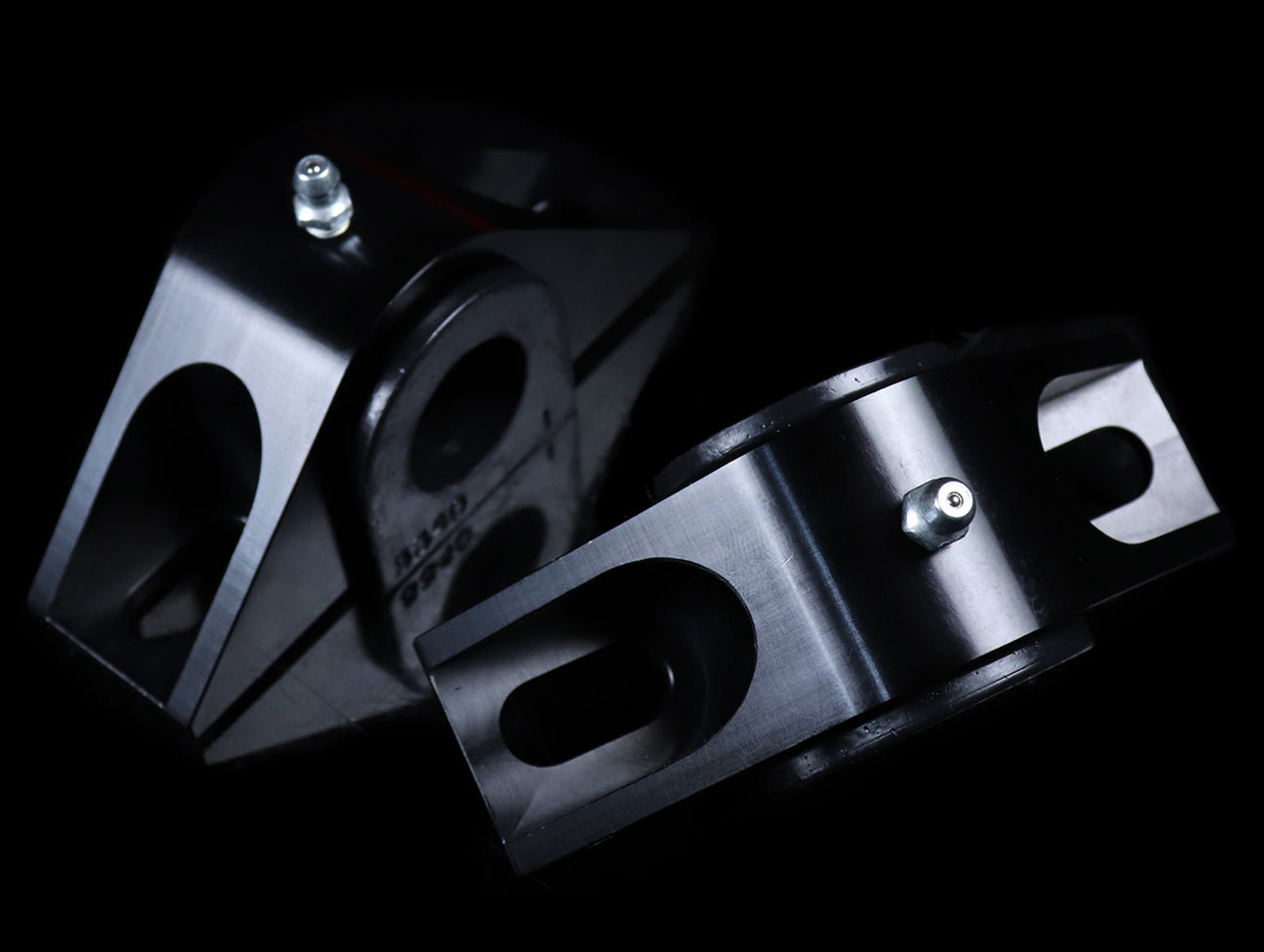 - Anodized black billet aluminum D-brackets w/polyurethane bushings