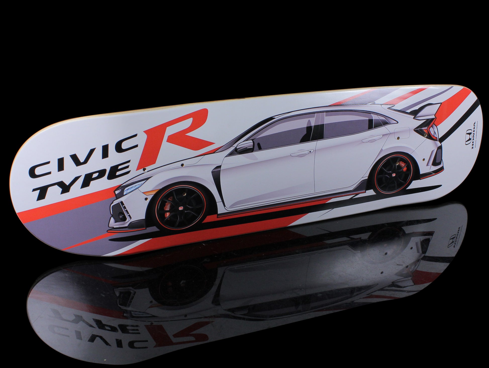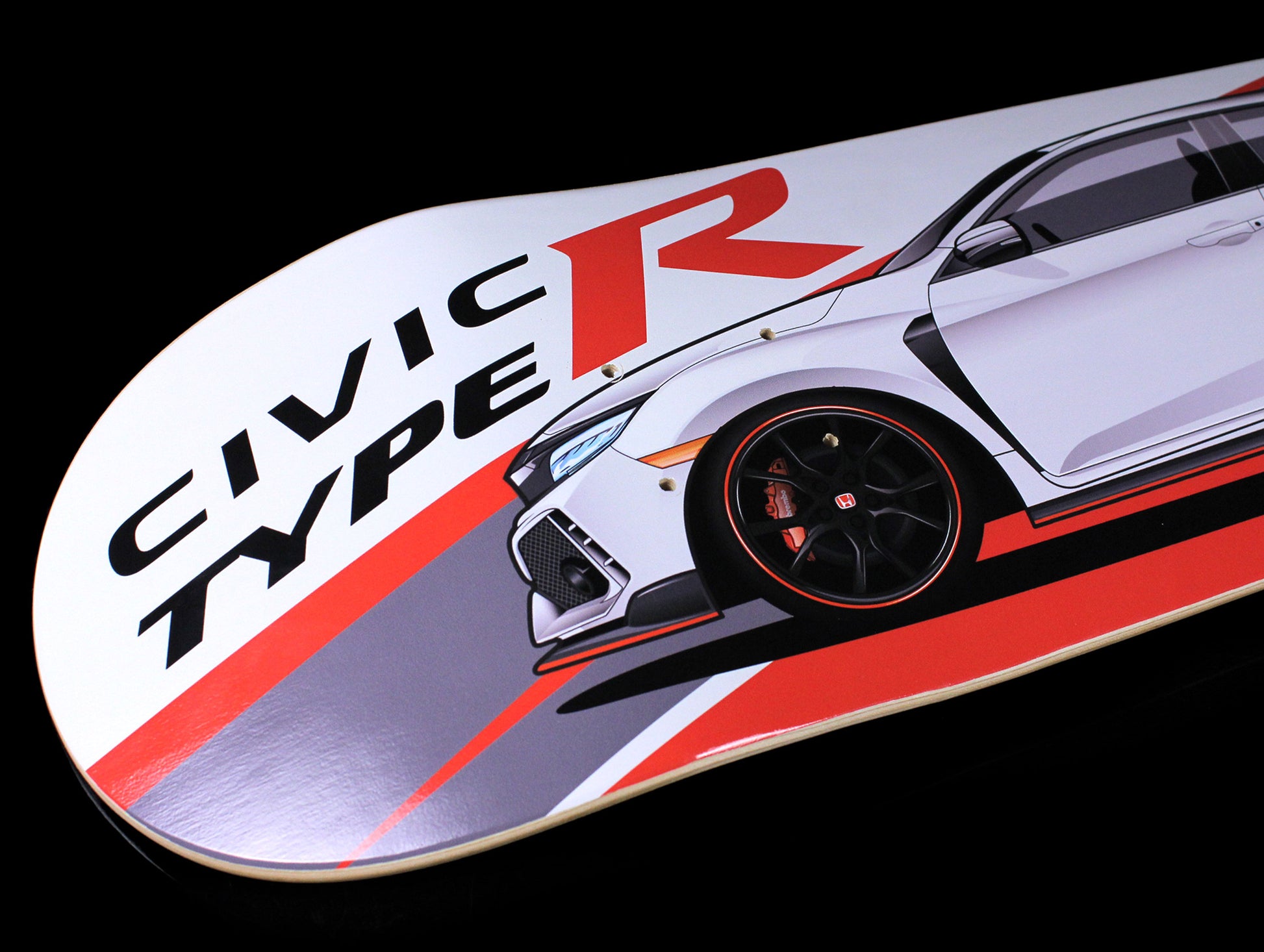 This is an official Honda licensed skate deck featuring a side profile graphics of the 2017 FK8 Civic Type-R!