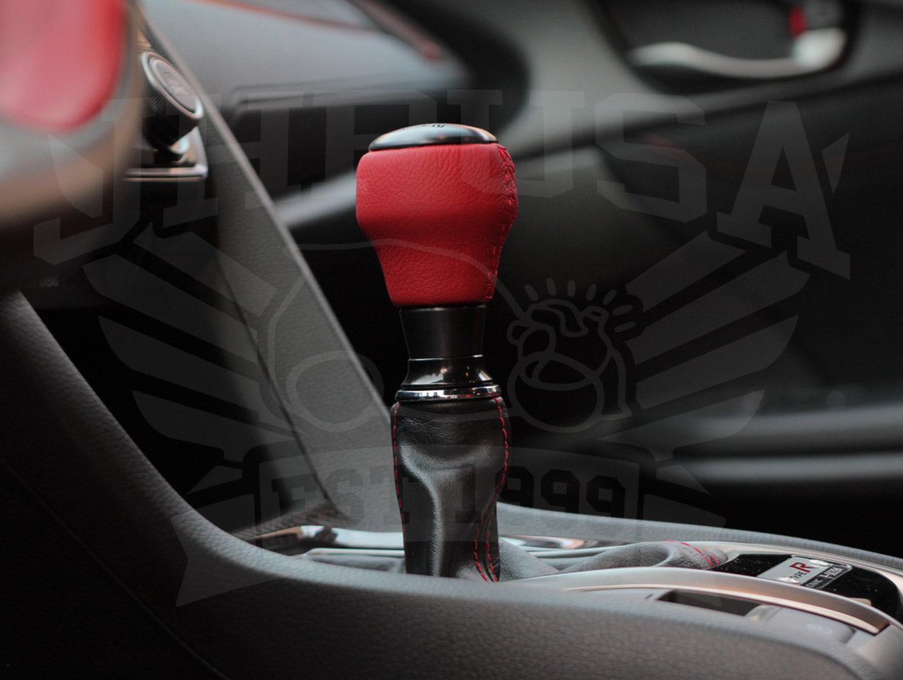 Honda Red Leather Black Alumite Shift Knob (6-speed) - 2017+ Civic Type-R (FK8)