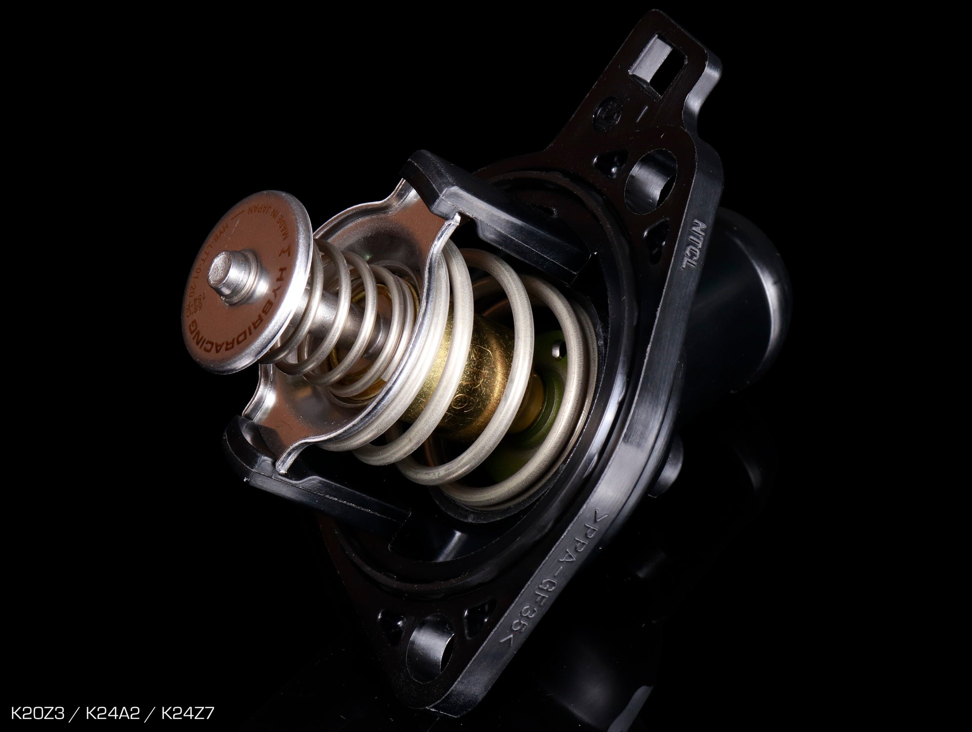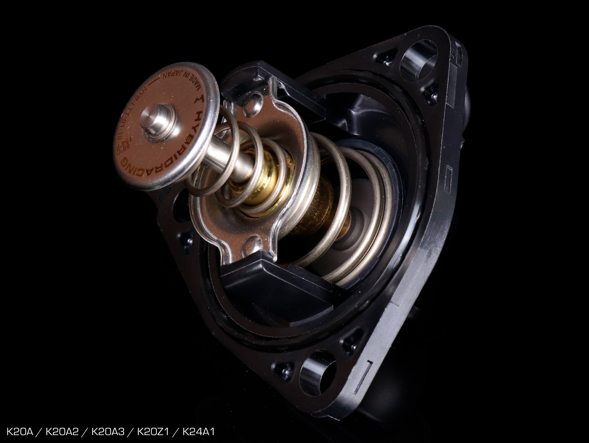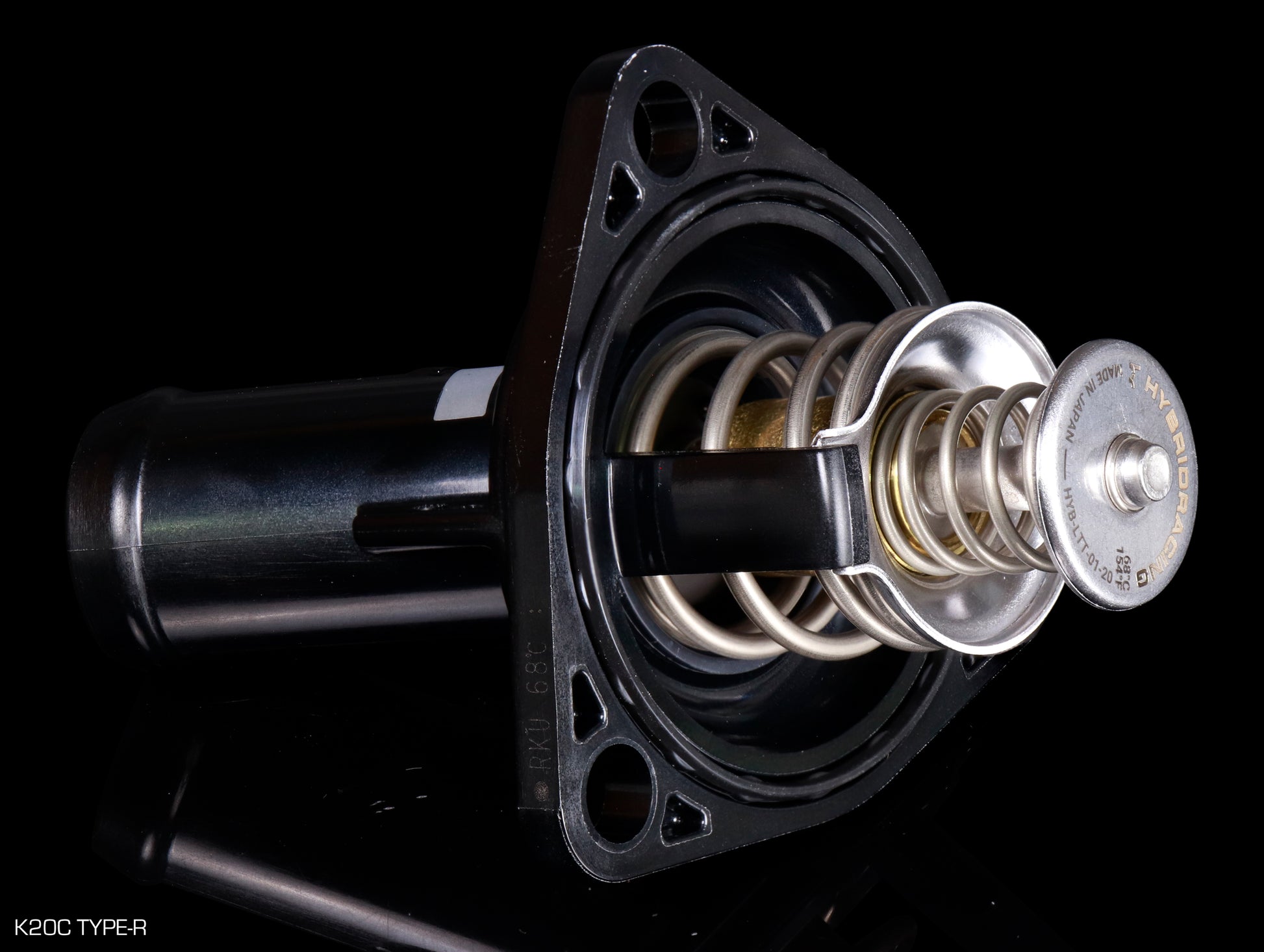 Hybrid Racing knows the advantages of using a low-temperature thermostat in high-performance or race environments are evident. Opening the thermostat's valve at a lower temperature allows coolant to flow more freely during low-load sections of the racetrack. This enables the radiator to effectively regulate the engine's temperature within the optimal range during high-load sections. If a cooling system is pushed to its limits at the racetrack and overheating becomes an issue, a low-temperature thermostat can often resolve this problem. It achieves this by allowing the radiator to perform more cooling at lower engine loads, thereby preventing or delaying overheating during high-engine loads.