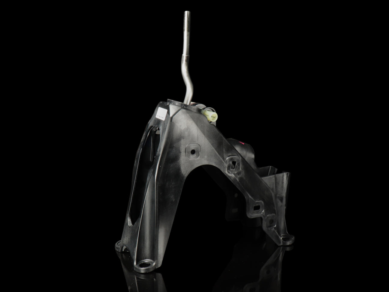 Mugen designed this left-hand-drive quick shifter with the sports driving enthusiast in mind. First, the shift lever is shortened with the lever positioned closer to the driver. The shift lever return spring is stiffer for more positive placement. All mounting bushings are replaced with rigid mounts to eliminate the flex of the stand shifter tower. Such improvements enable quicker and more direct shifting operation.