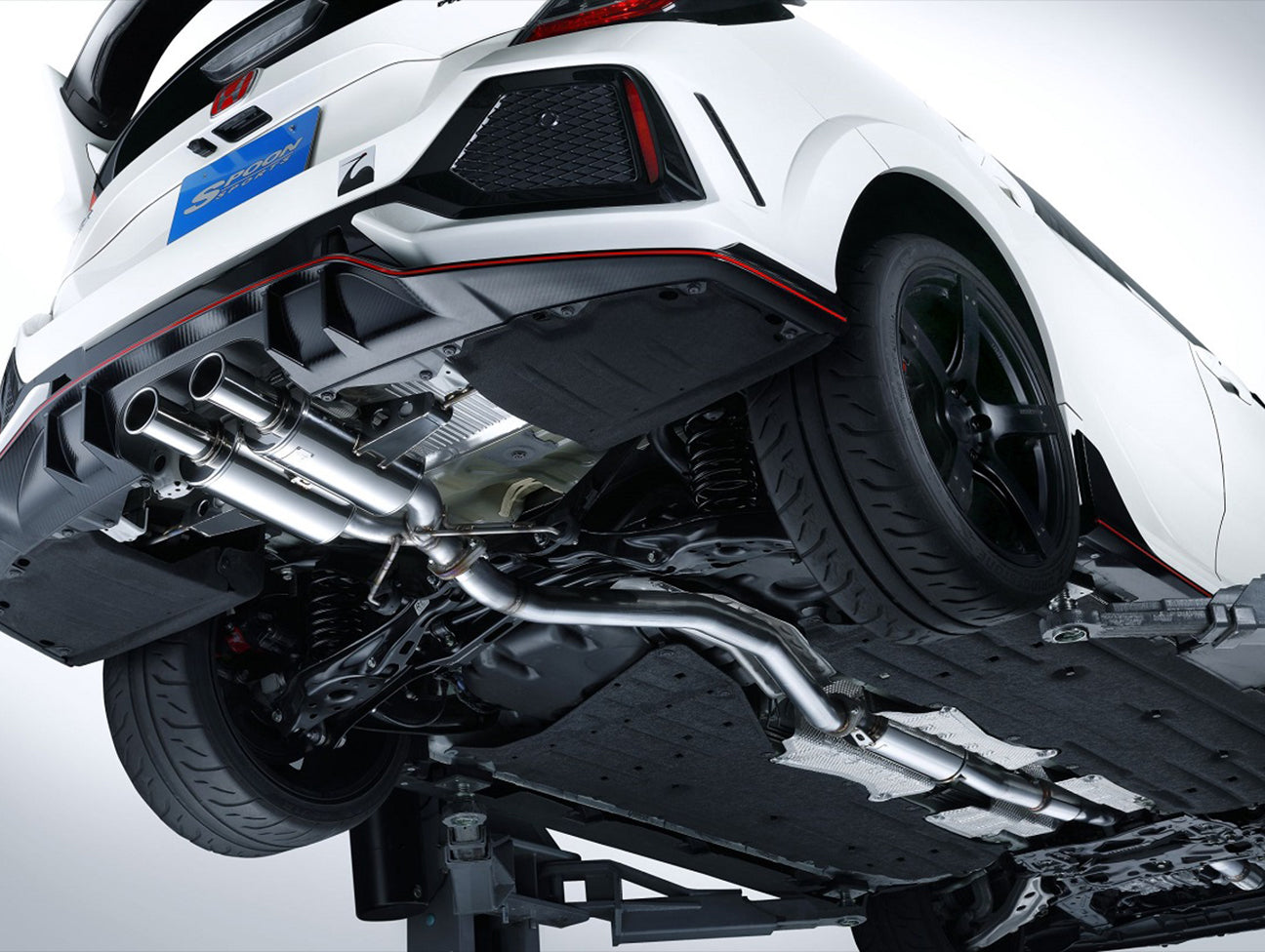 Spoon N1 exhuast is made from full SUS304 SS and uses the Iconic N1 Muffler Tips. Straight through 70mm piping layout with dual 145mm and 70mm tips.
