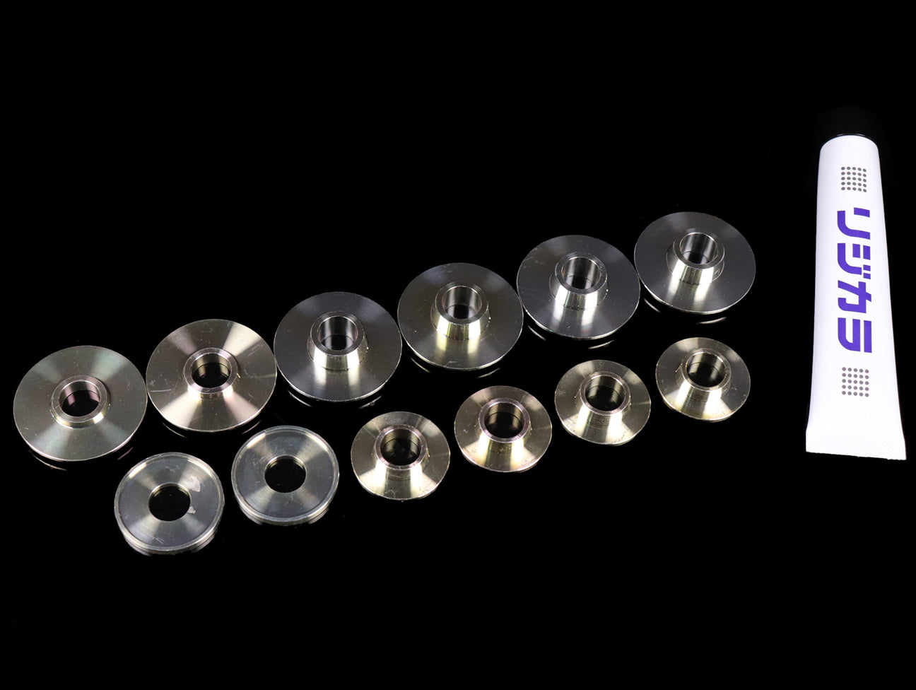 Collars are inserted into the subframe mounting holes to fill the 2mm gap around the bolts to provide a tighter fit. Prevents subframe from moving and rattling under load, thus reducing wobble of the steering wheel with uneven pavement. Sharpens suspension feel and increases chassis rigidity.