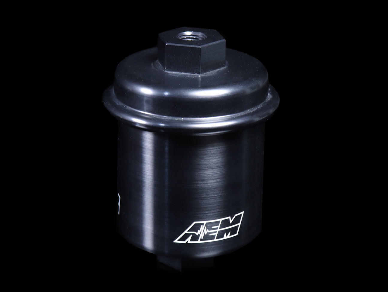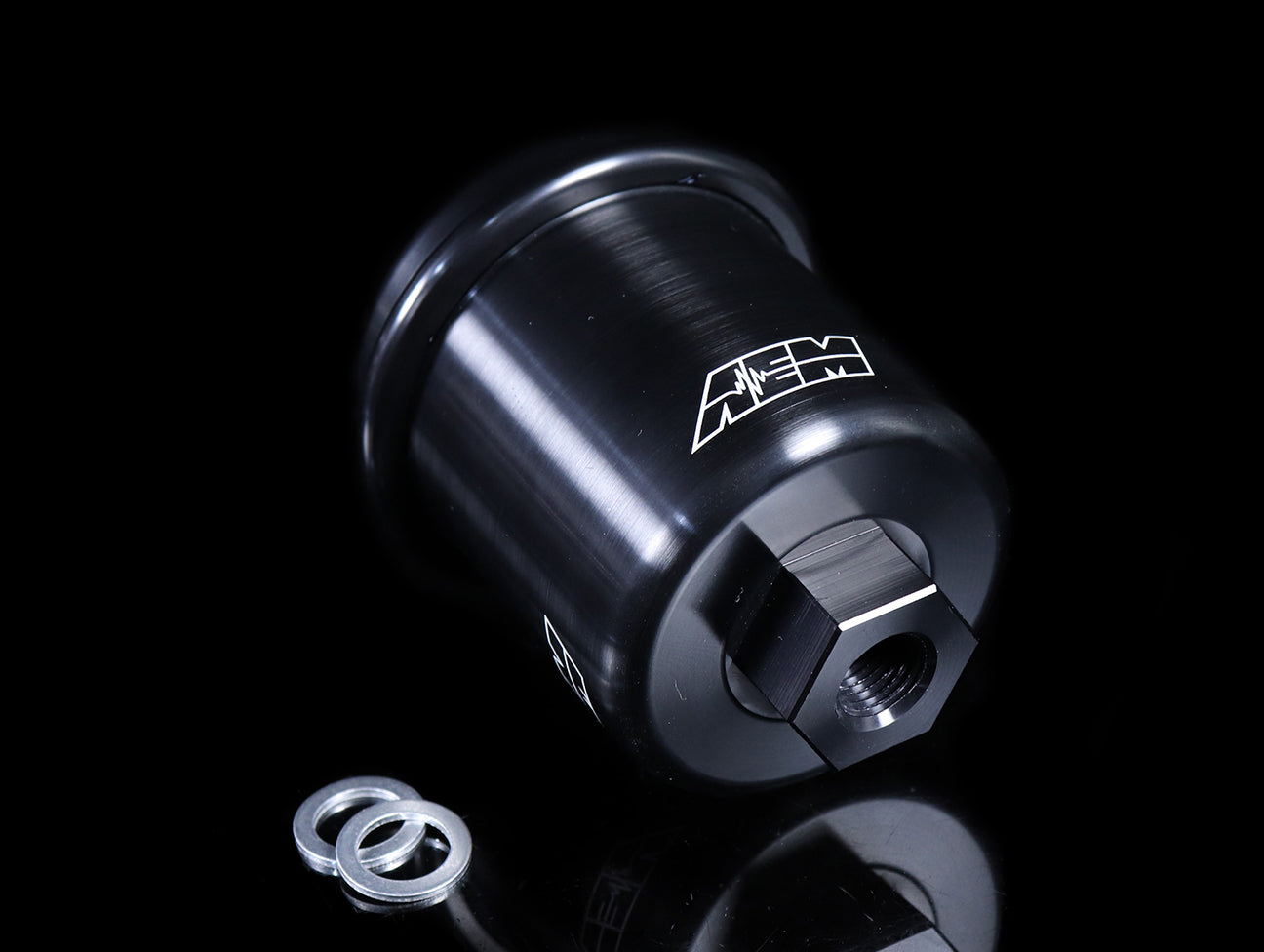 AEM's High Performance Fuel Filter for Honda/Acura is capable of supporting power applications up to 500 horsepower. Double O-ring seals deliver added leak protection, and the unit's 6061-aluminum body provides excellent durability. The standard filter element is replaceable and available at most auto parts stores.