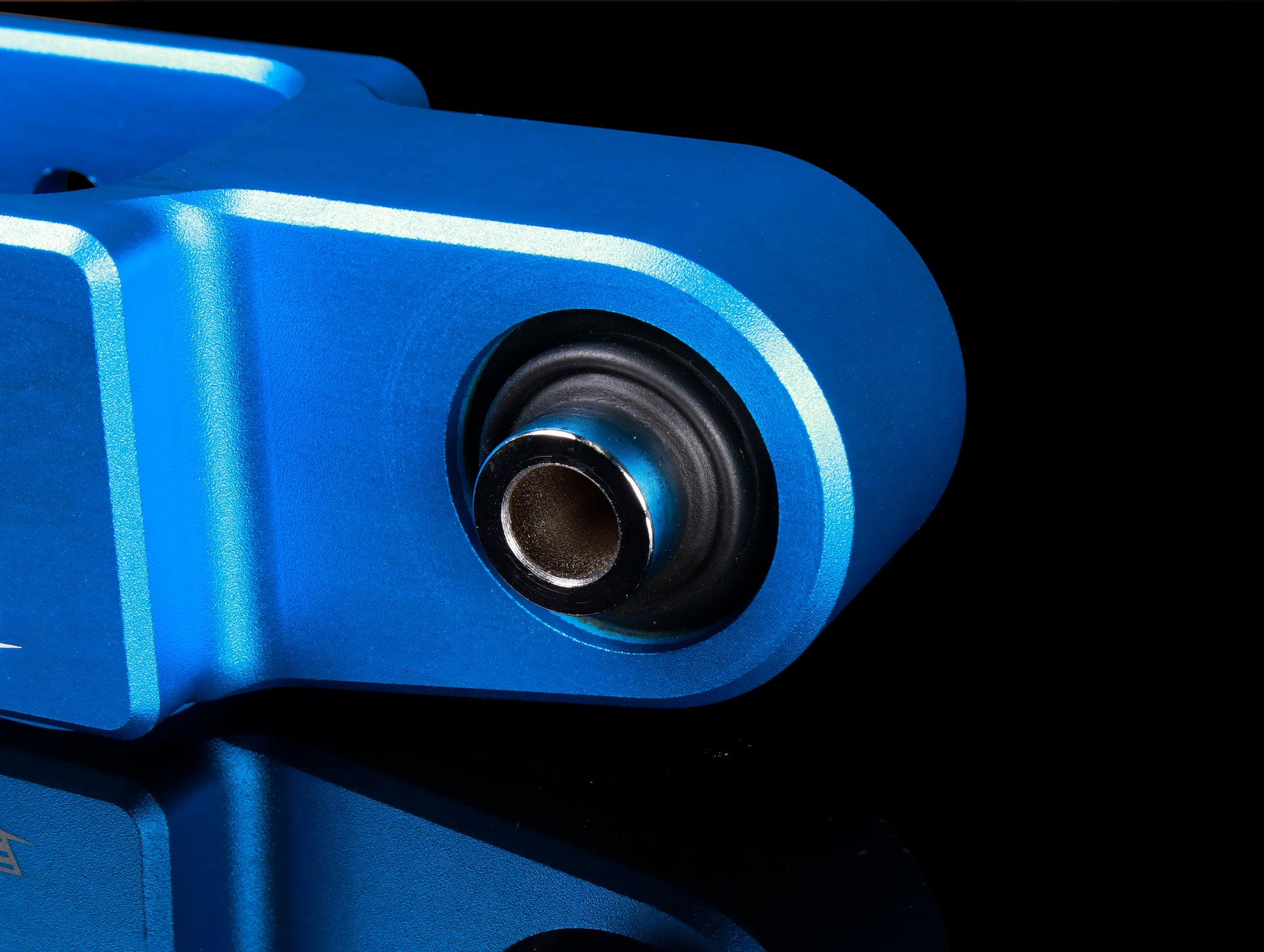 Hardrace redesigned the control arms with improved construction and materials. Made of CNC machined aluminum alloy instead of stamped steel, these arms offer superior strength, durability, yet remain lightweight. The high quality pillow ball bushings also provide greater handling response over the factory components.
