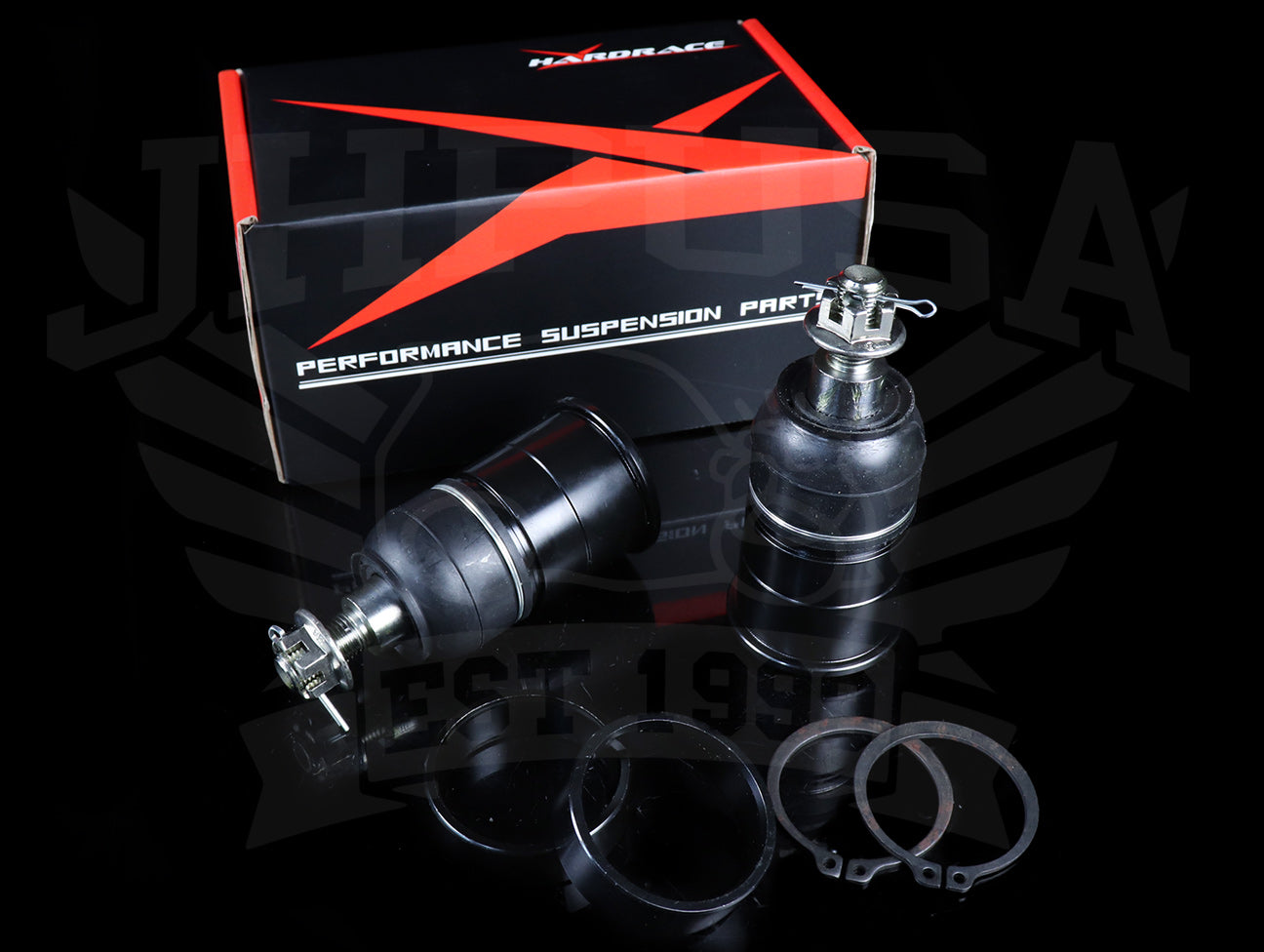 Hardrace forged front roll center adjusters (RCA) are extended ball joints that are designed to directly replace the factory ball joint inside the front knuckle assemblies.