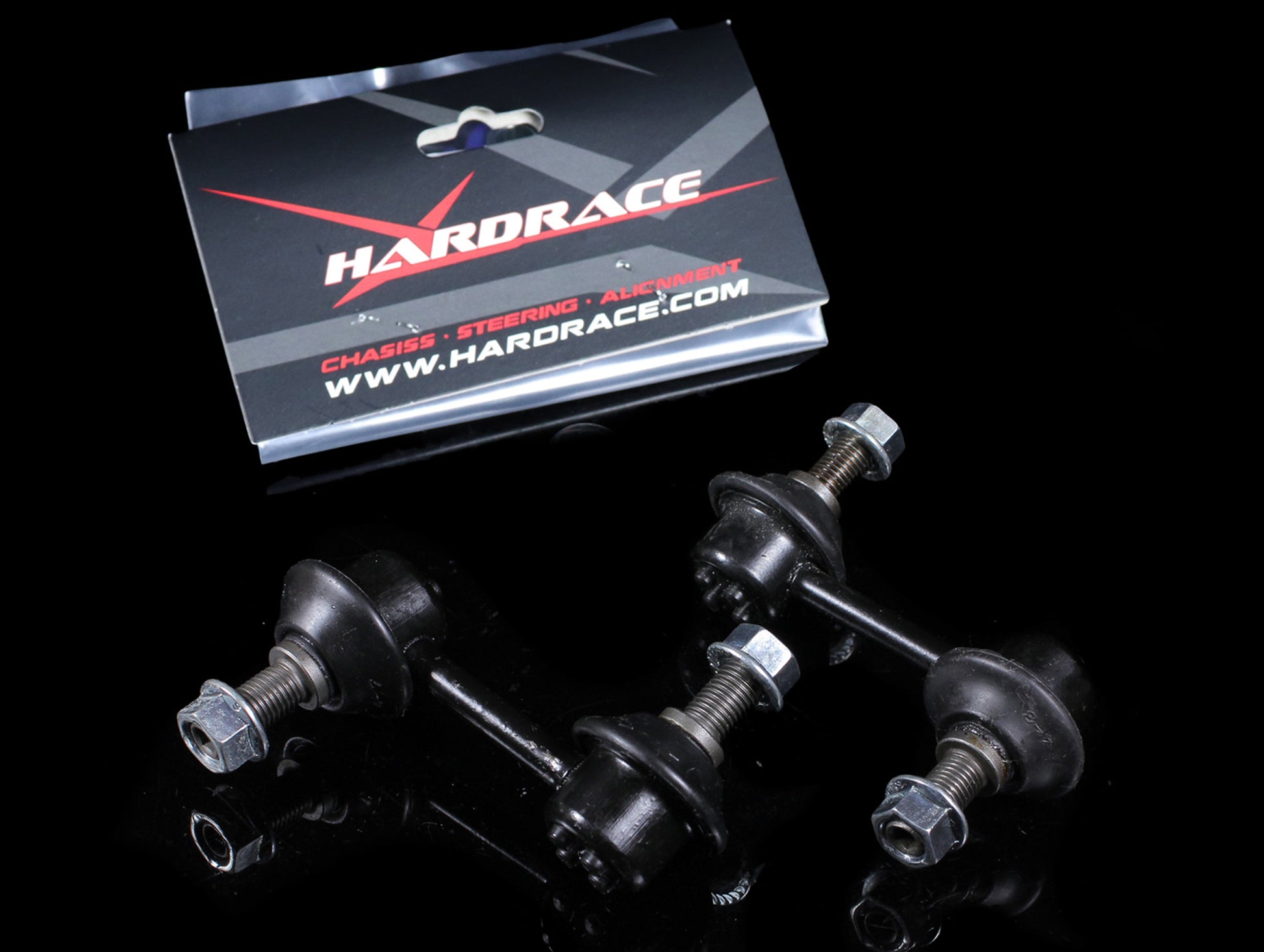 The Hardrace front stabilizer links features a thermoplastic rubber dust cover with temperature range from --40°C ~ 100°C. Precision spheroid provides smooth rotational movement for more responsive steering.
