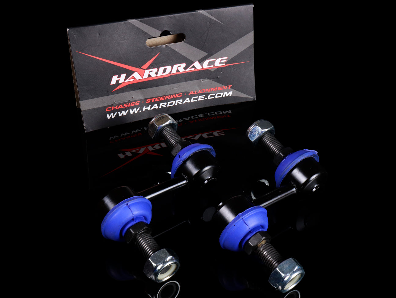 The Hardrace front stabilizer links features a thermoplastic rubber dust cover with temperature range from --40°C ~ 100°C. Precision spheroid provides smooth rotational movement for more responsive steering.