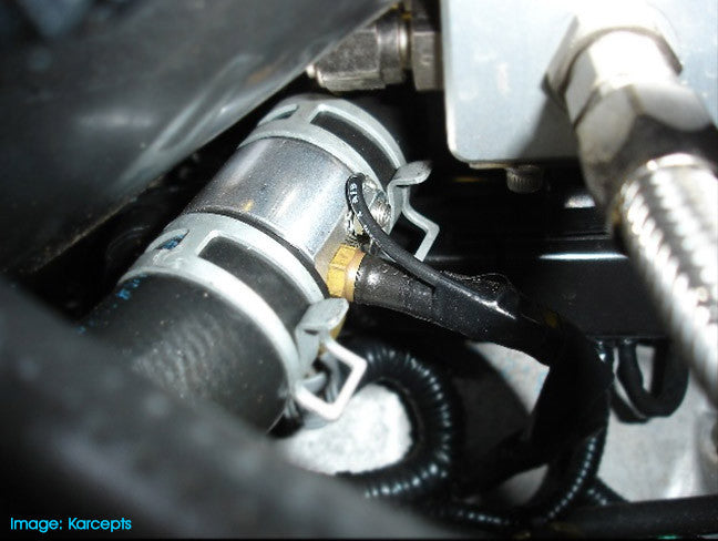 Hasport hose adapter for K-series engine swap with fan switch and temp sender ports.