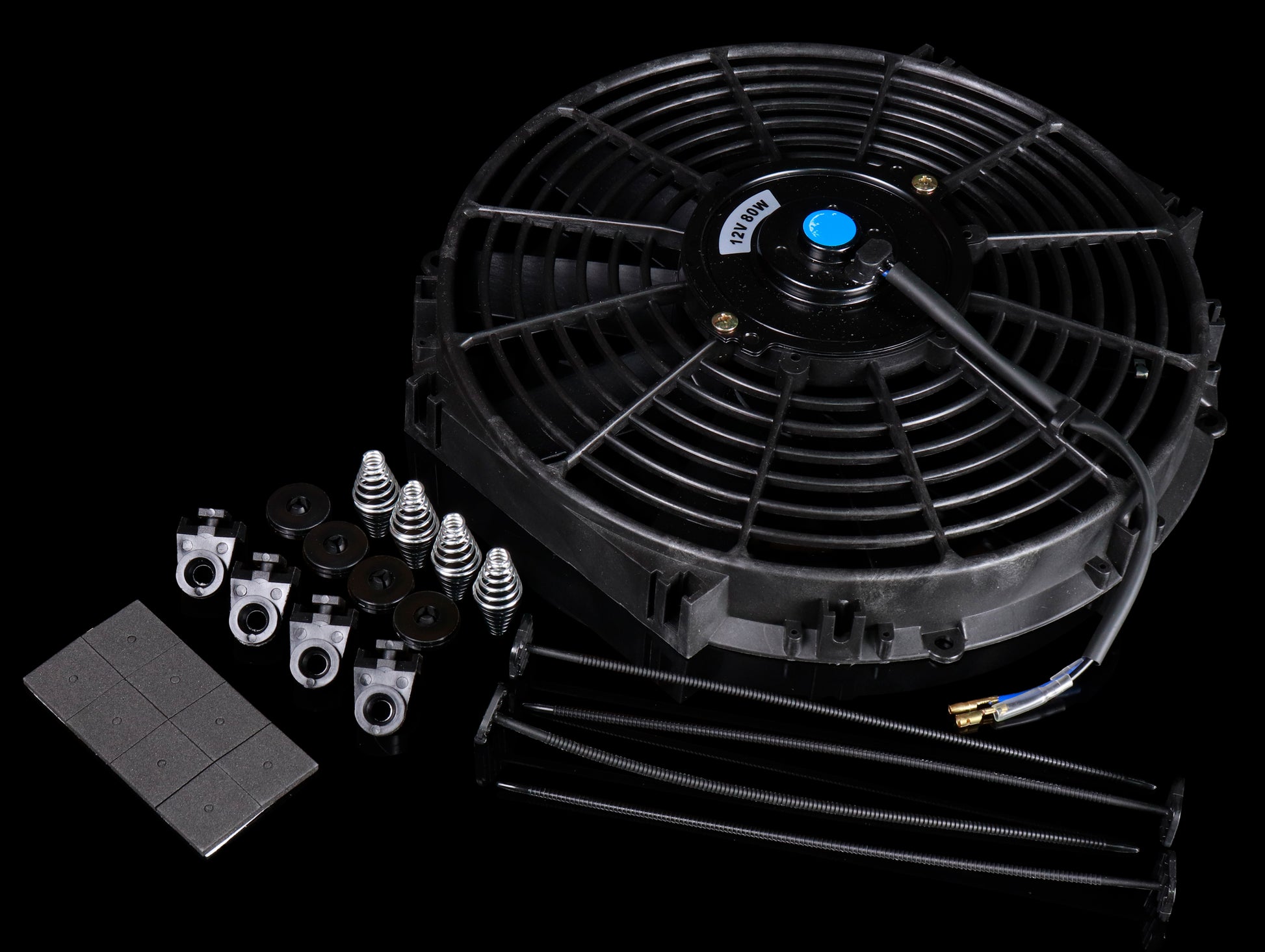 These universal slim fans can fit and work in a variety of applications. If you are doing a K-Series engine swap you will need to change the fan since the OE units are too thick. This fan works also works great with Hybrid Racing's full-size radiators. Hybrid recommends using a 12" slim fan on half-size radiators and (2) 10" fans on the full-size radiators.