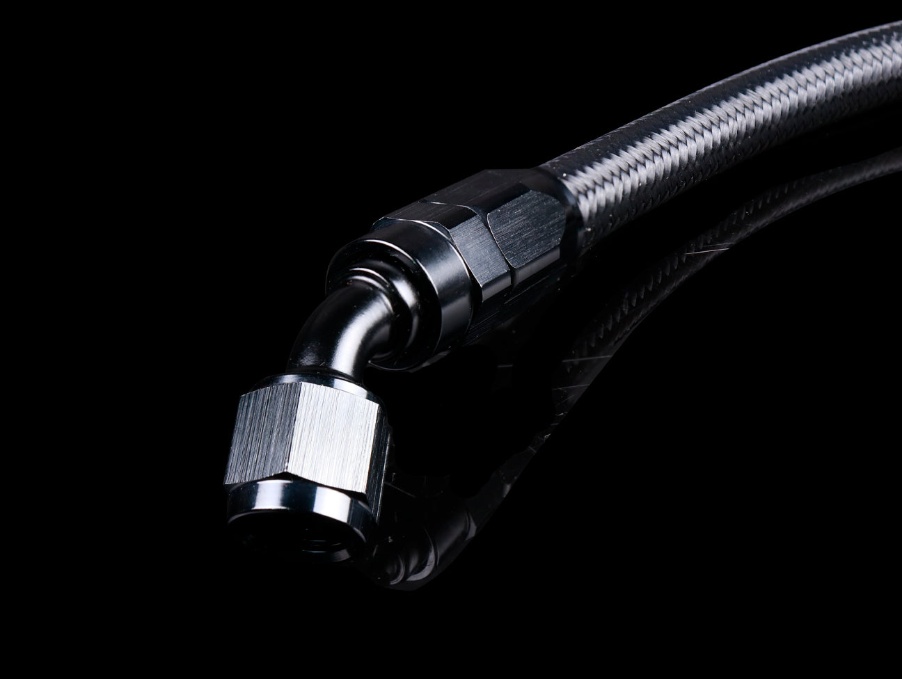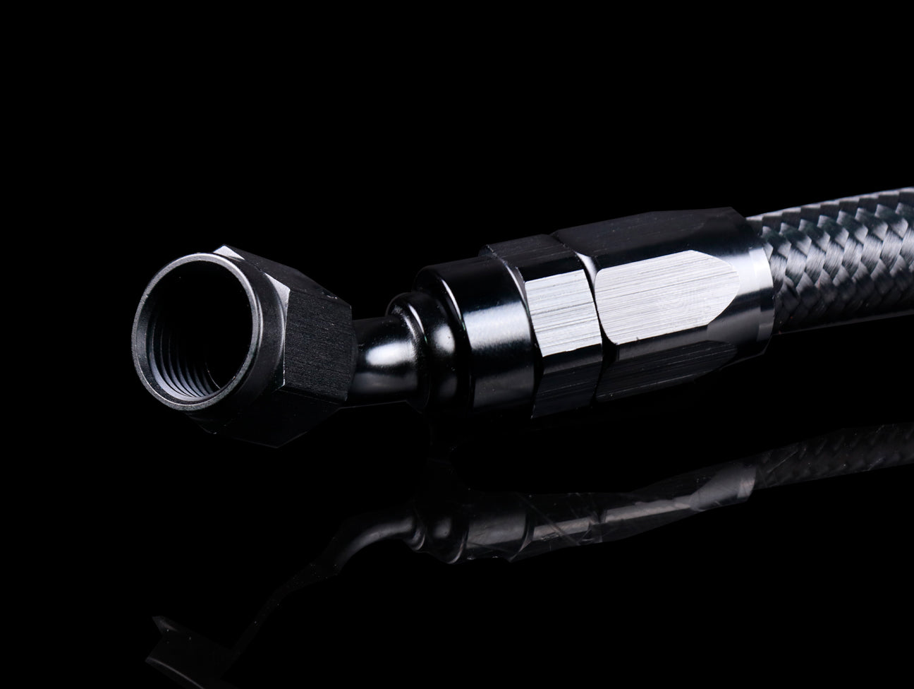 This kit replaces the OEM rubber lines with a -6AN braided line. You can attach this line to an aftermarket B-Series fuel rail with a -6AN adapter fitting. Once installed, the new line will route similar to the OEM fuel line.