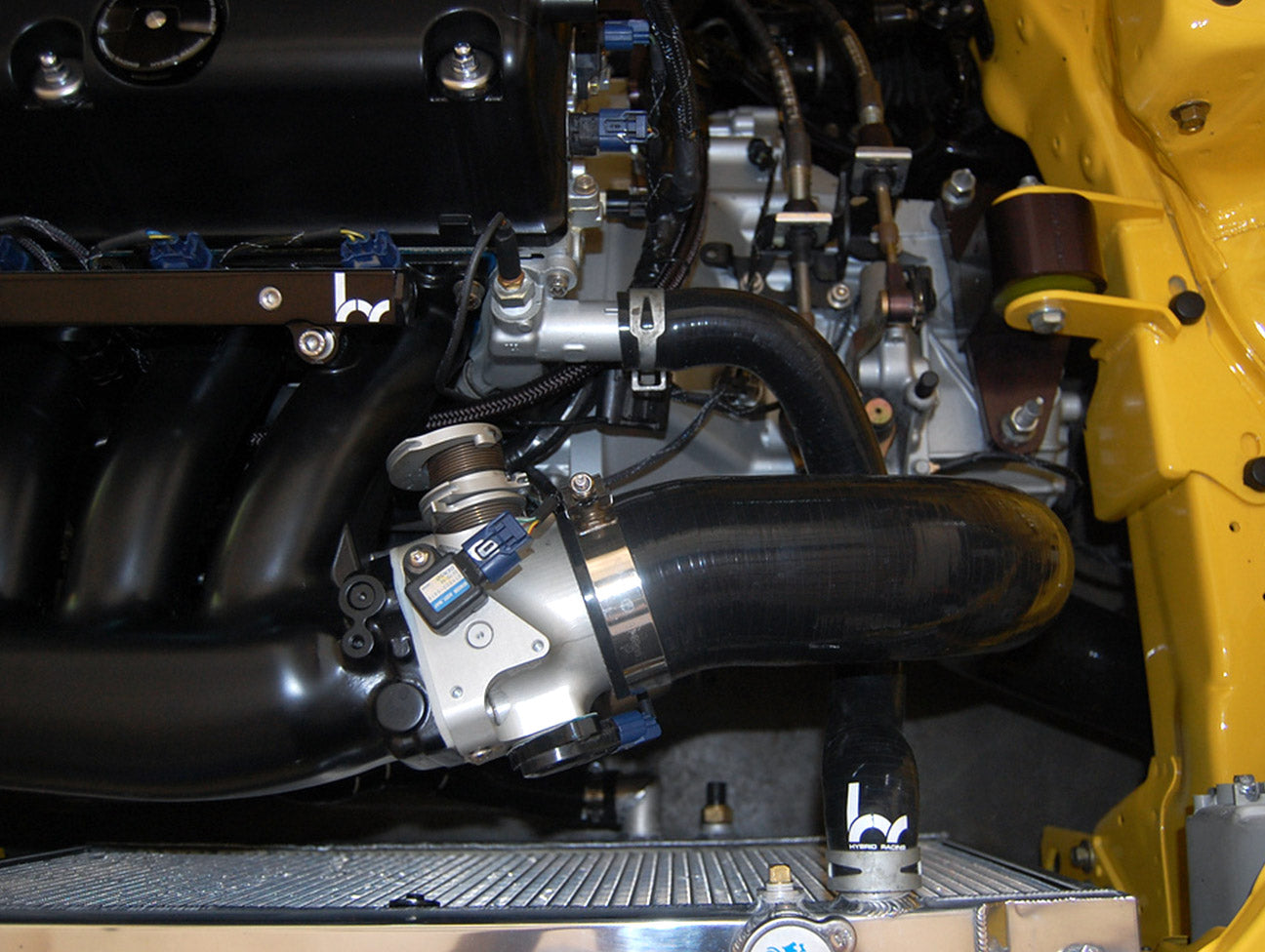 Hybrid Racing has designed radiator hoses specifically for those customers performing a K-swap that want a clean and organized engine bay. The kit is designed to route the upper hose under your cold air intake improving the engine bays looks and minimizing unneeded bends. All of the inlets and outlets are the correct sizes and we paid extra attention to preventing interference with the transmission counter weights. The hoses were created to work with both the Hybrid Racing bolt in radiators as well as your OEM radiator (as long as you relocated it).