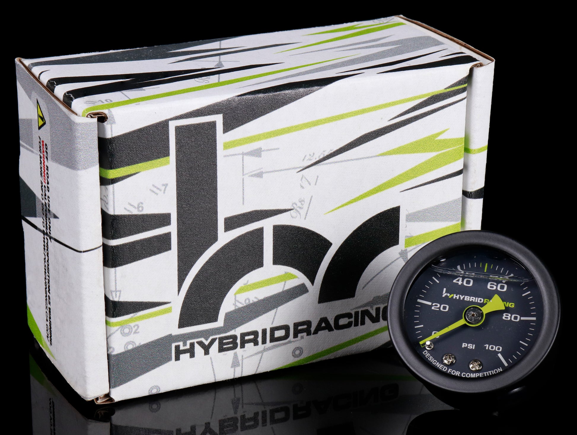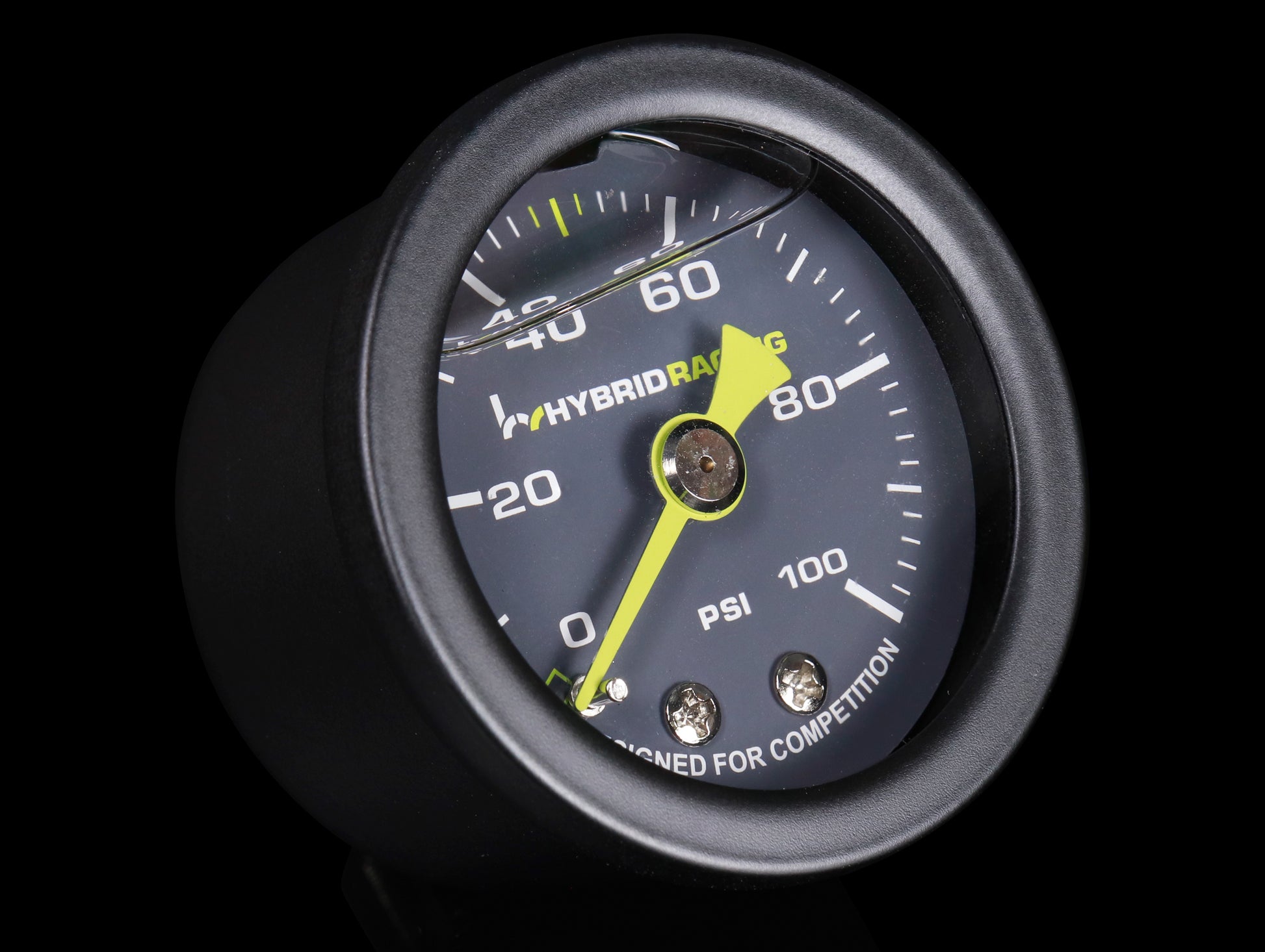 The precision-engineered Hybrid Racing fuel pressure gauge provides accurate fuel pressure readings that are critical for highly sophisticated fuel systems. They resist the most severe vibrations, offer a 0-100 psi reading and are housed in an all-steel case with a matte black finish and a Hybrid Racing Green needle.