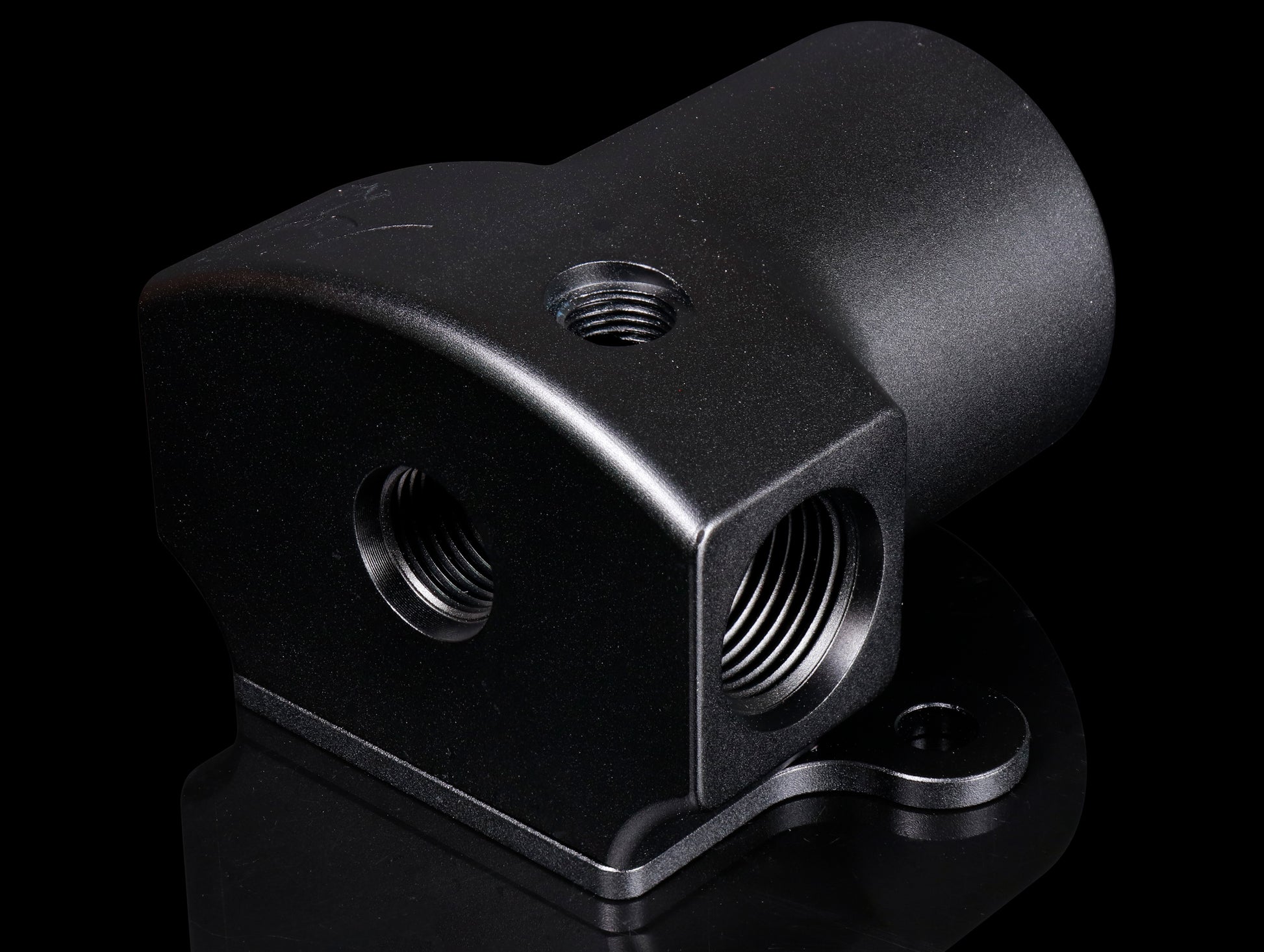The end product is a regulator that keeps your fuel pressure consistent and looks good doing it. Each regulator is supplied with all the fittings you’ll need to hook up a return system with -6 AN lines. The regulator can accept up to -8AN lines. (Package includes: x3 -8ORB/-6AN fittings, x1 -6ORB/-4AN, x1 1/8th NPT plug, Nylon vacuum port, anodized billet mounting bracket & hardware)