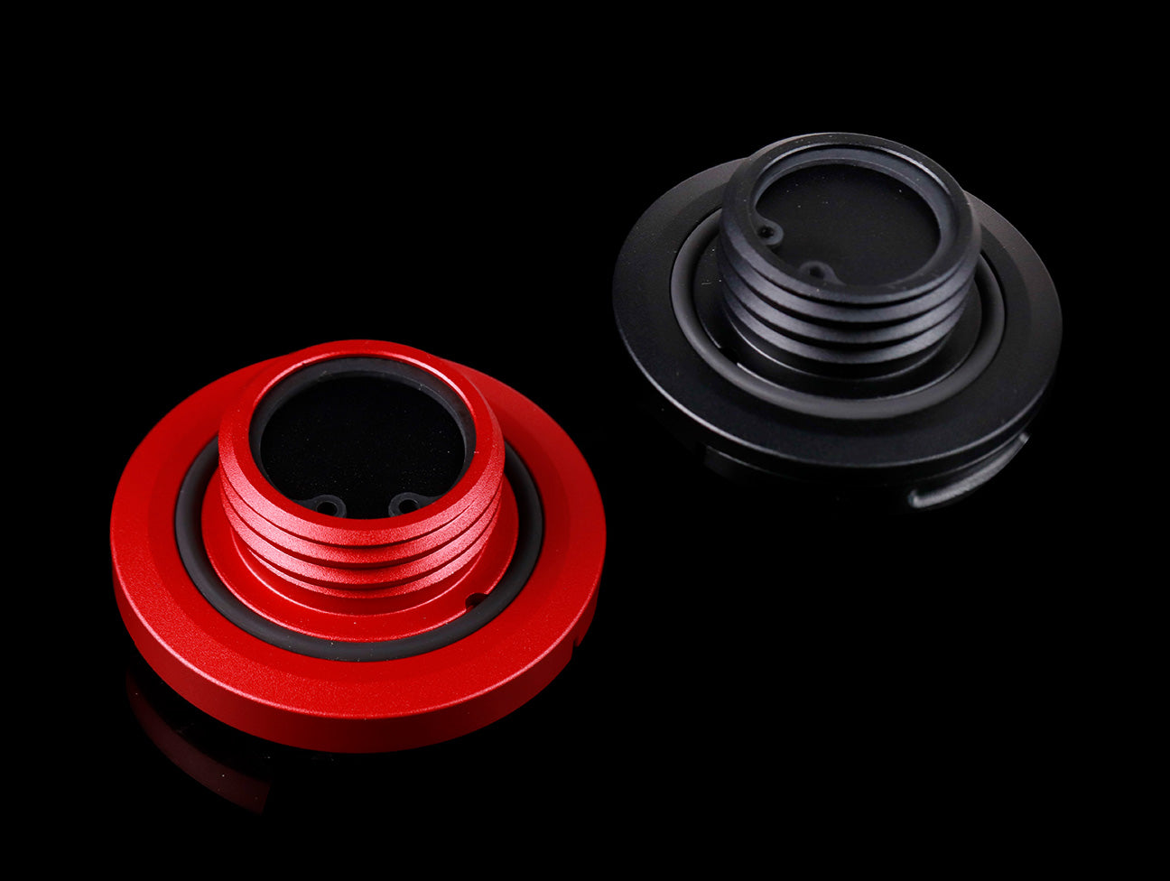 The Hybrid Racing V2 Slim Oil Cap a beautifully crafted oil cap that's both clean in appearance, providing improved valve cover to hood clearance, and super easy to remove. HR V2 Oil Cap updates include a new Dust Red finish, outer edge shape & inner design machining with crisp new etching!