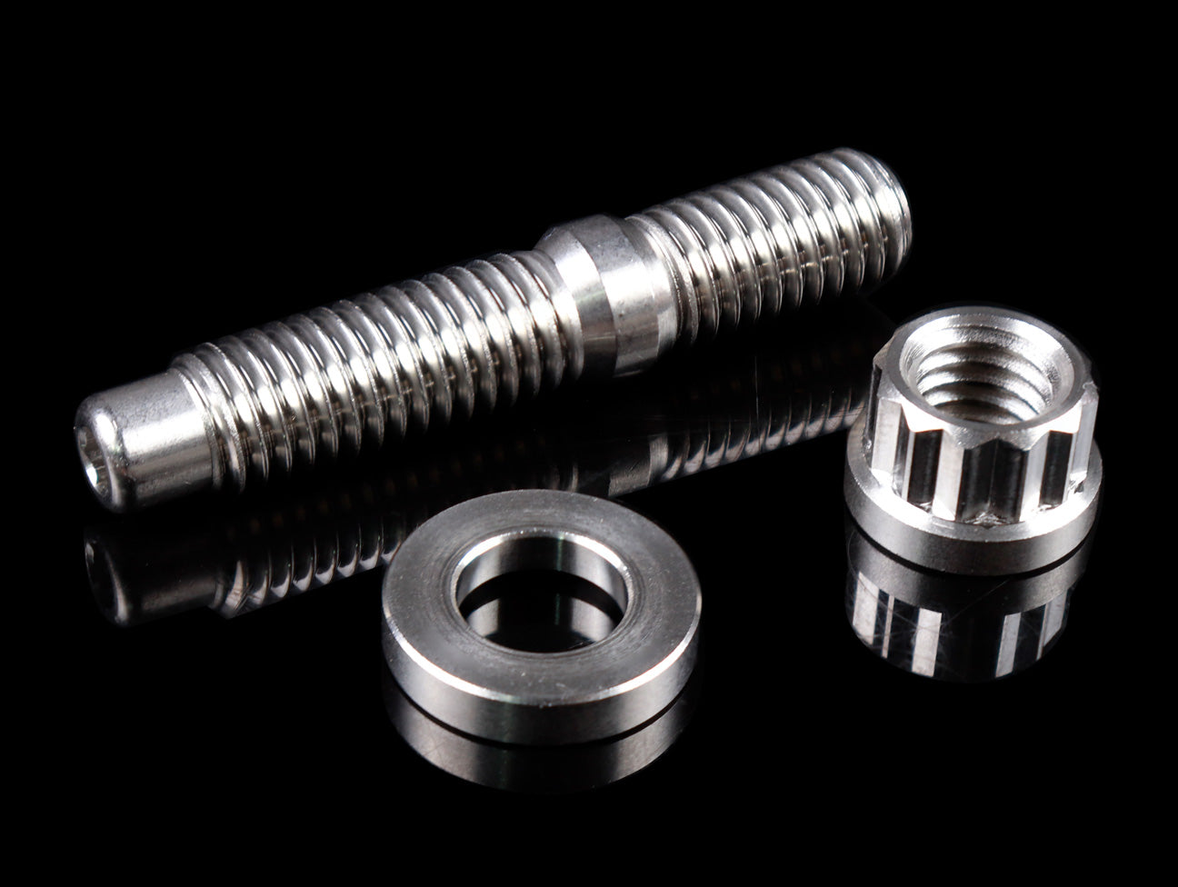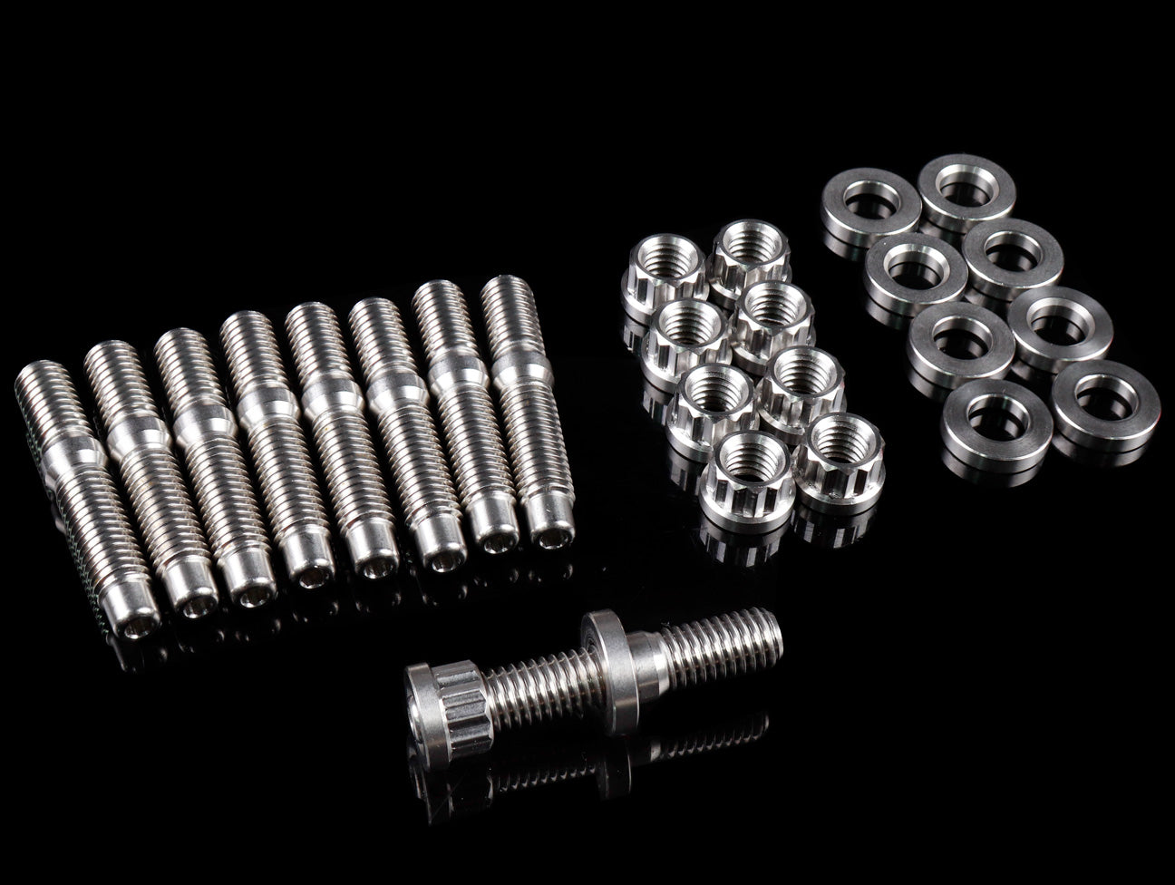 BLOX Racing intake and exhaust studs are CNC-machined from SUS303 stainless steel. Each stud features precision threads and includes a washer and 12-point hex nut. The stainless steel material provides excellent durability and protection from extreme heat and wear.